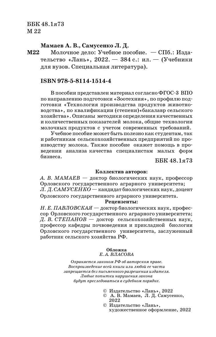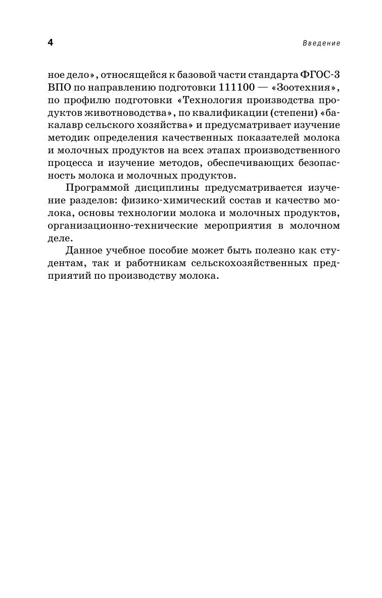 В пособии представлен материал согласно ФГОС-3 ВПО по направлению подготовки «Зоотехния», профиль подготовки «Технология производства продуктов животноводства», квалификация (степень) «бакалавр сельского хозяйства». Описаны методики определения качественных и количественных показателей молока, общие технологии молочных продуктов с учетом современных требований. Пособие окажет помощь в проведении анализа качества молока специалистам малых форм бизнеса.