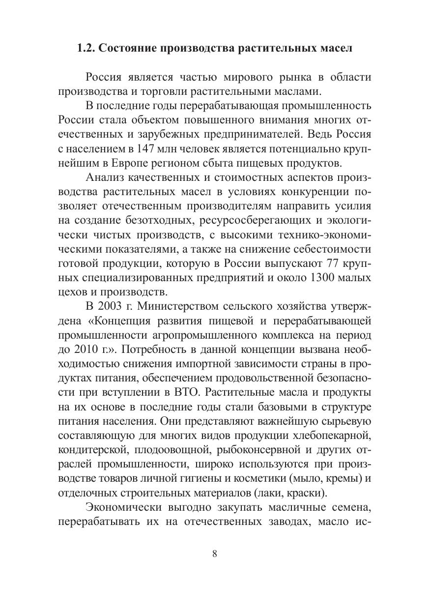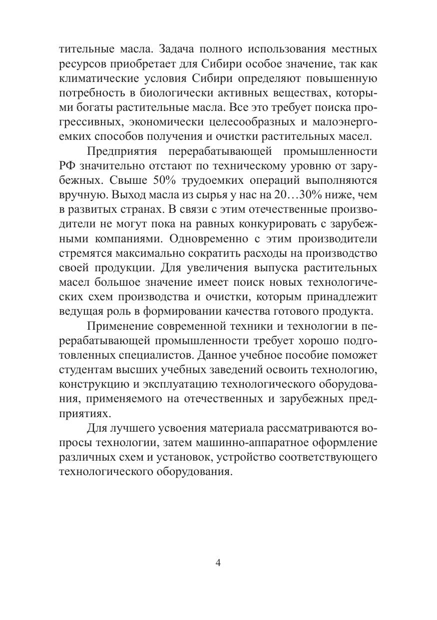 Рассмотрены технологическое оборудование и технологии для переработки сельскохозяйственной продукции, обеспечивающие реализацию производственного цикла растительных масел из технических культур. Приведены технологические расчеты, технические характеристики и справочные данные по основным видам оборудования. Учебное пособие предназначено для студентов высших сельскохозяйственных учебных заведений по агроинженерным специальностям: бакалавры по профилю 110803.62 – Технологическое оборудование для хранения и переработки сельскохозяйственной продукции, инженеры по профилю 110303.65 – Механизация переработки сельскохозяйственной продукции, 110305 – Производство и переработка сельскохозяйственной продукции, а также может быть использовано учащимися средних профессиональных учебных заведений.