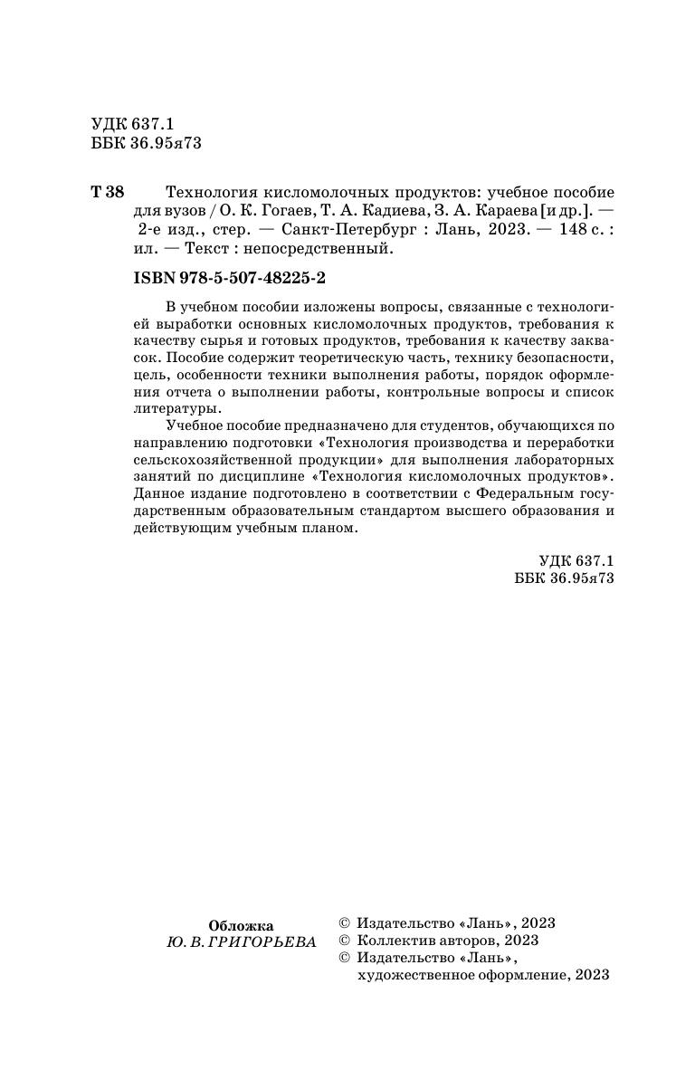 В учебном пособии изложены вопросы, связанные с технологией выработки основных кисломолочных продуктов, требования к качеству сырья и готовых продуктов, требования к качеству заквасок. Пособие содержит теоретическую часть, технику безопасности, цель, особенности техники выполнения работы, порядок оформления отчета о выполнении работы, контрольные вопросы и список литературы. Учебное пособие предназначено для студентов, обучающихся по направлению подготовки «Технология производства и переработки сельскохозяйственной продукции» для выполнения лабораторных занятий по дисциплине «Технология кисломолочных продуктов».Данное издание подготовлено в соответствии с Федеральным государственным образовательным стандартом высшего образования и действующим учебным планом.