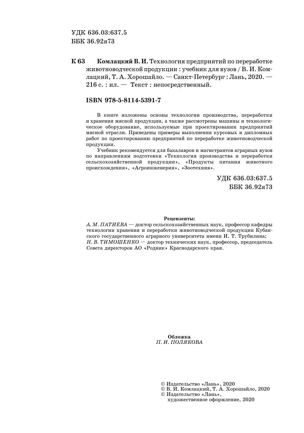 Учебник рекомендуется для бакалавров и магистрантов аграрных вузов по направлениям подготовки «Технология производства и переработки сельскохозяйственной продукции», «Продукты питания животного происхождения», «Агроинженерия», «Зоотехния».