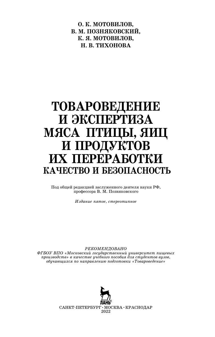 Авторы: Мотовилов О. К., Позняковский В. М., Мотовилов К. Я., Тихонова Н. В.