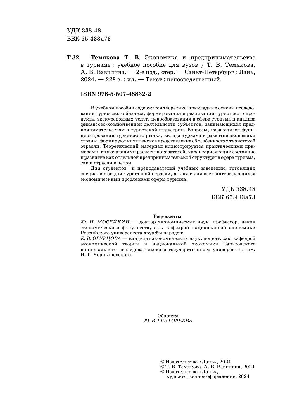 В учебном пособии содержатся теоретико-прикладные основы исследования туристского бизнеса, формирования и реализации туристского продукта, экскурсионных услуг, ценообразования в сфере туризма и анализа финансово-хозяйственной деятельности субъектов, занимающихся предпринимательством в туристской индустрии. Вопросы, касающиеся функционирования туристского рынка, вклада туризма в развитие экономики страны, формируют комплексное представление об особенностях туристской отрасли. Теоретический материал иллюстрируется практическими примерами, включающими расчеты показателей, характеризующих состояние и развитие как отдельной предпринимательской структуры в сфере туризма, так и отрасли в целом. Для студентов и преподавателей учебных заведений, готовящих специалистов для туристской отрасли, а также для всех интересующихся экономическими проблемами сферы туризма.