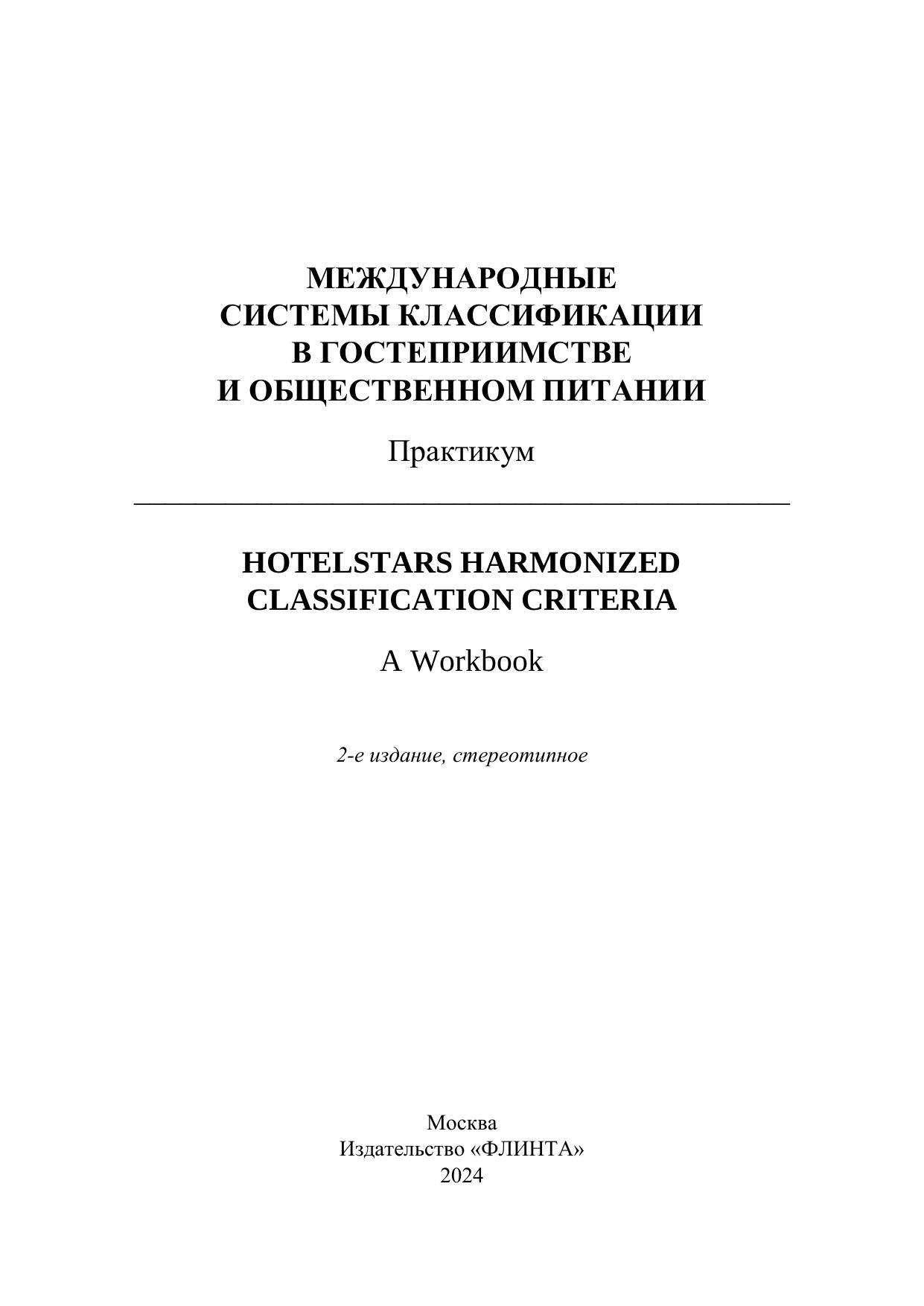 Международные системы классификации в гостеприимстве и общественном питании = Hotelstars Harmonized Classification Criteria: A Workbook