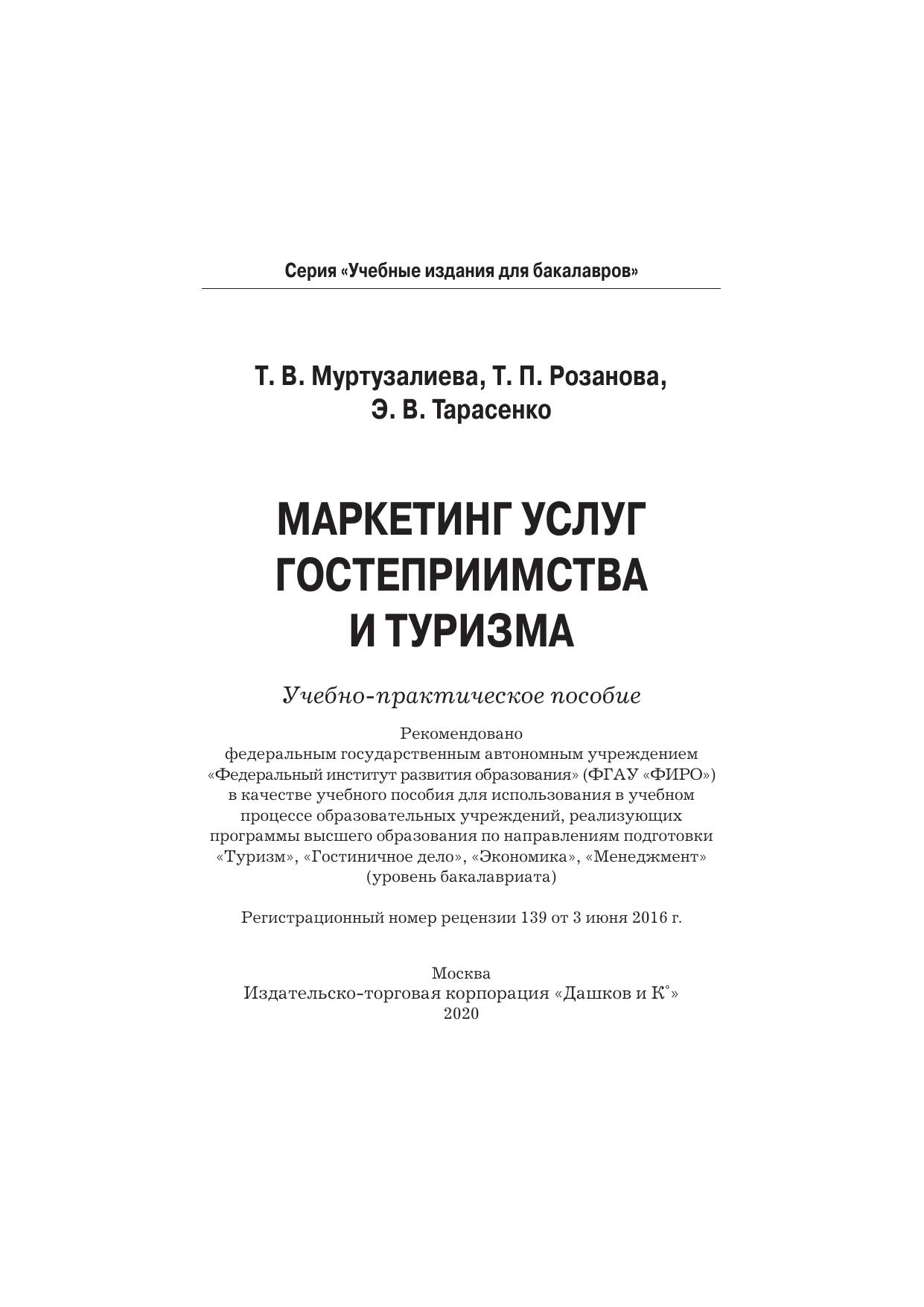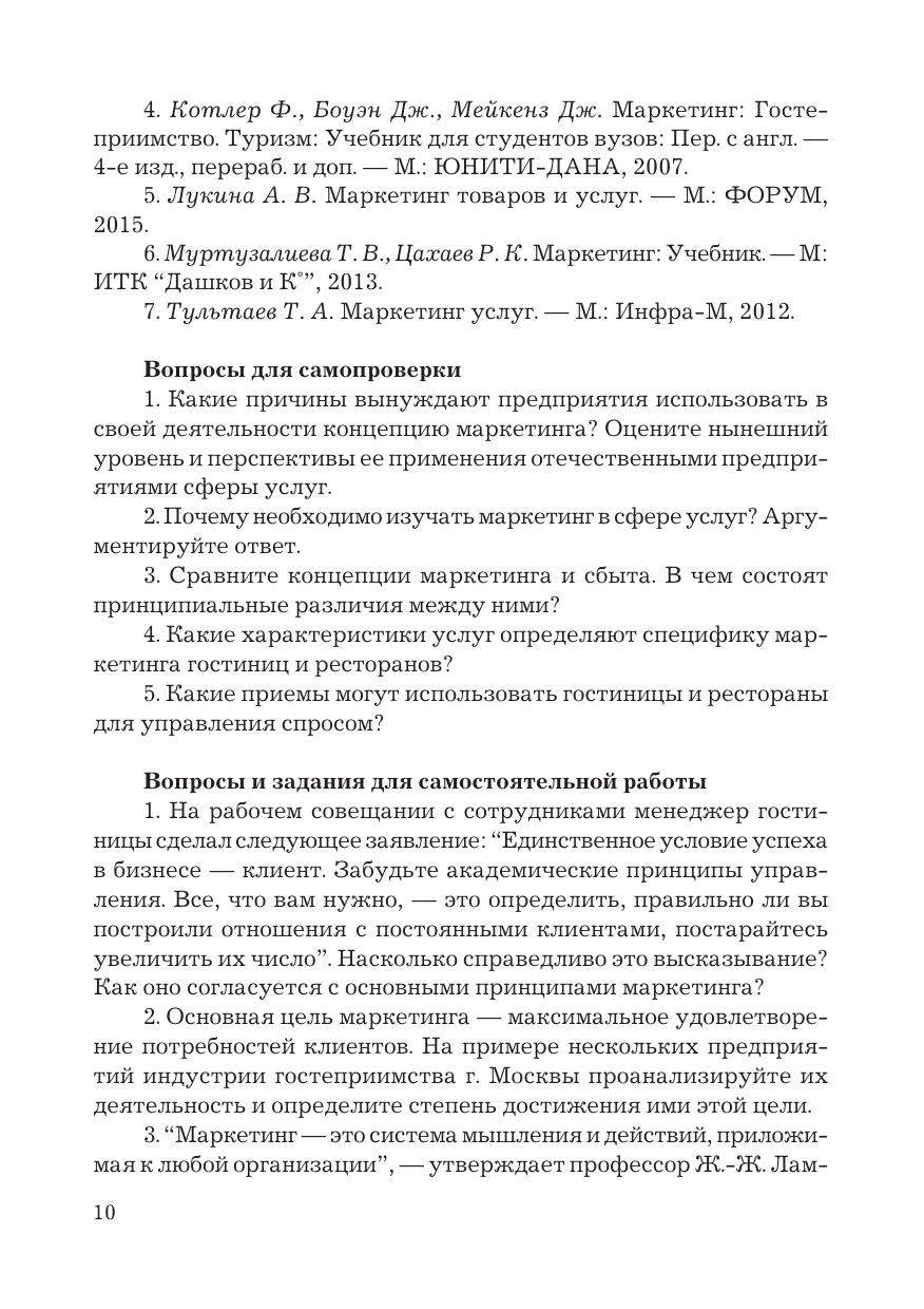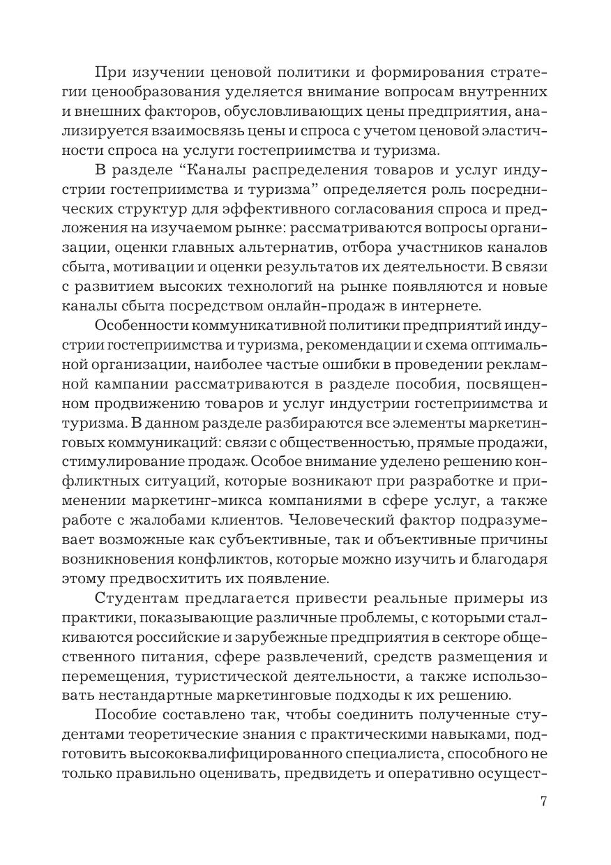 В учебно-практическом пособии рассматриваются специфика маркетинга услуг гостеприимства и туризма, особенности маркетинговой среды предприятий сферы услуг, маркетинговые стратегии международных и национальных туристических организаций, поведение потребителей товаров и услуг, сегментация рынка, продуктовая, ценовая и коммуникативная политика предприятий индустрии гостеприимства и туризма. В каждом разделе даны контрольные вопросы и вопросы для самопроверки, задания для самостоятельной работы, практические задания в виде тестов, расчетных задач, позволяющие оценить знание теоретического материала, кроссворды для усвоения основных терминов, а также ситуационные задачи. Для студентов бакалавриата, обучающихся по направлениям подготовки «Туризм», «Гостиничное дело», «Экономика» и «Менеджмент».