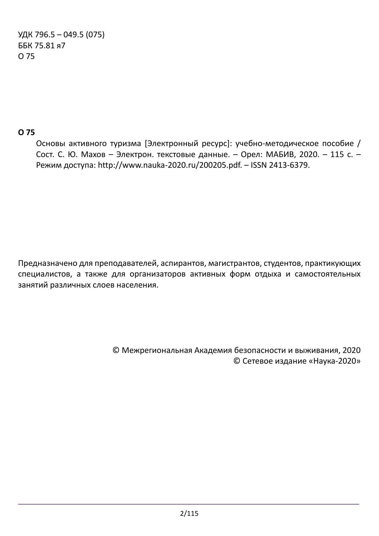 Предназначено для преподавателей, аспирантов, магистрантов, студентов, практикующих специалистов, а также для организаторов активных форм отдыха и самостоятельных занятий различных слоев населения.