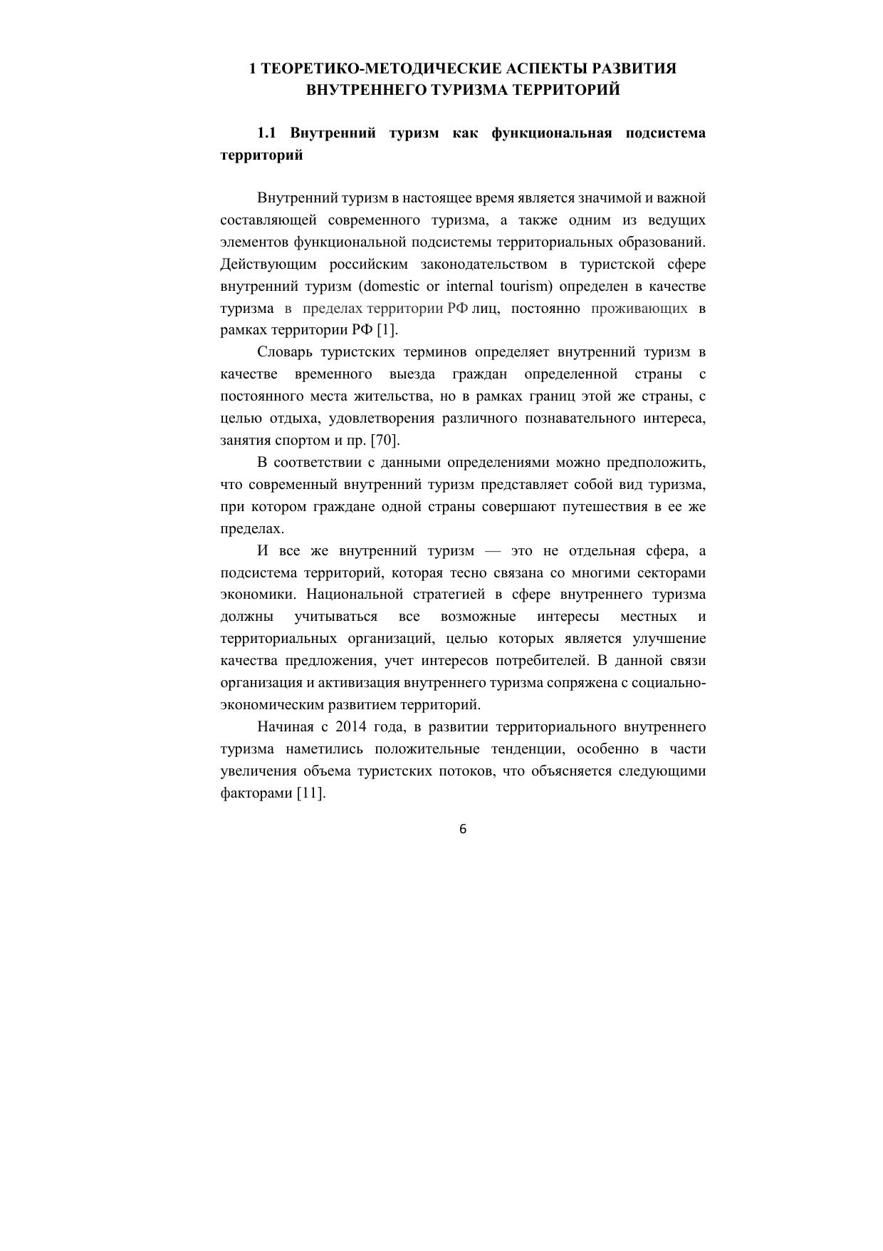 Развитие внутреннего туризма территорий