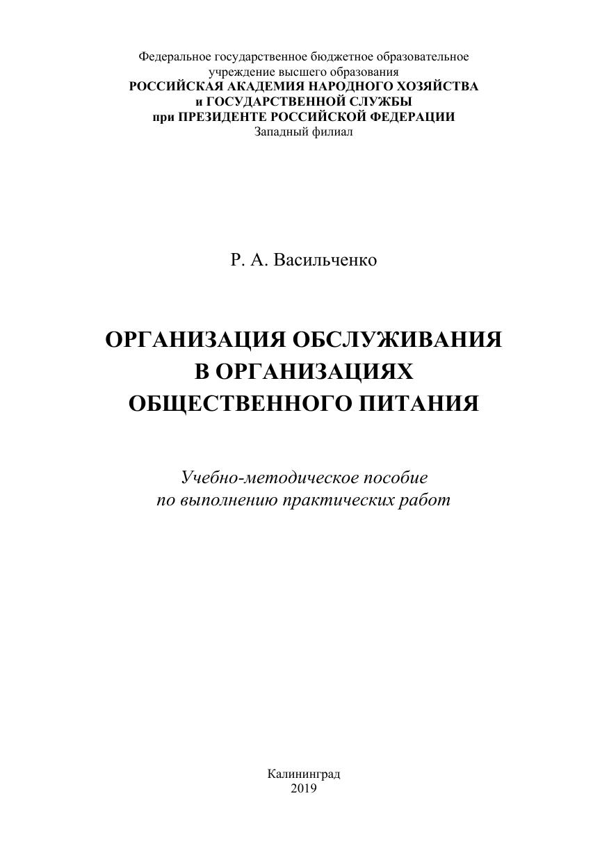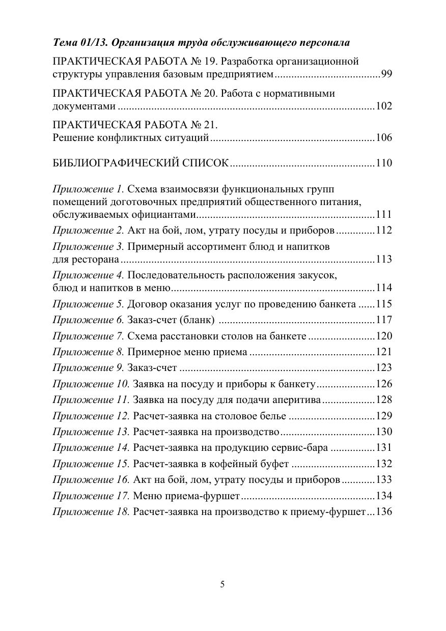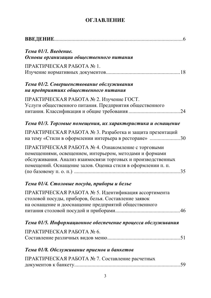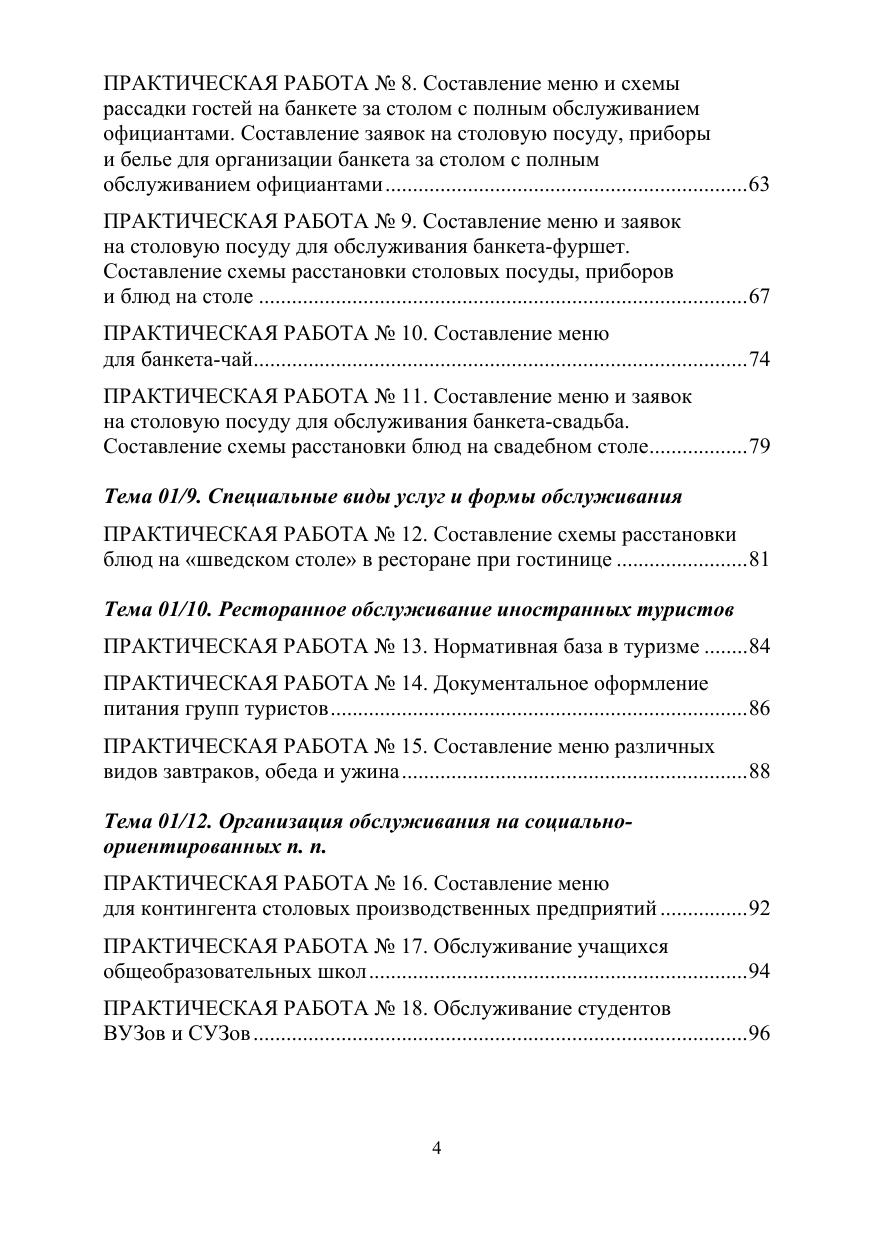 Организация обслуживания в организациях общественного питания по выполнению практических работ