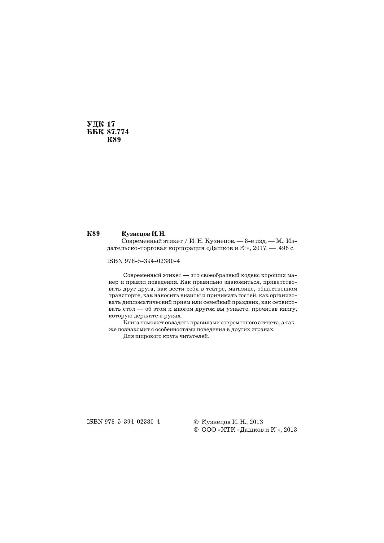 Современный этикет - это своеобразный кодекс хороших манер и правил поведения. Как правильно знакомиться, приветствовать друг друга, как вести себя в театре, магазине, общественном транспорте, как наносить визиты и принимать гостей, как организовать дипломатический прием или семейный праздник, как сервировать стол - об этом и многом другом вы узнаете, прочитав эту книгу. Книга поможет овладеть правилами современного этикета, а также познакомит с особенностями поведения в других странах. Для широкого круга читателей.
