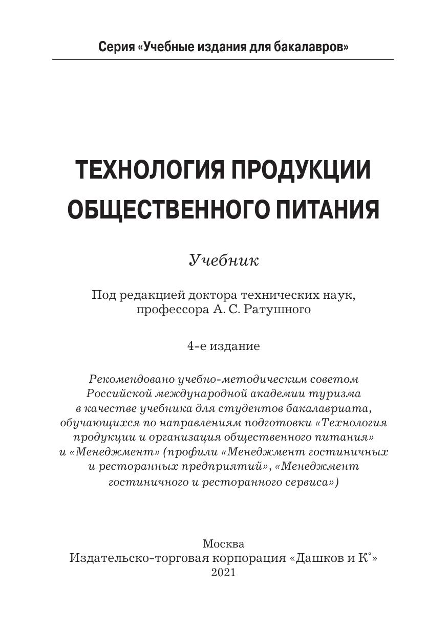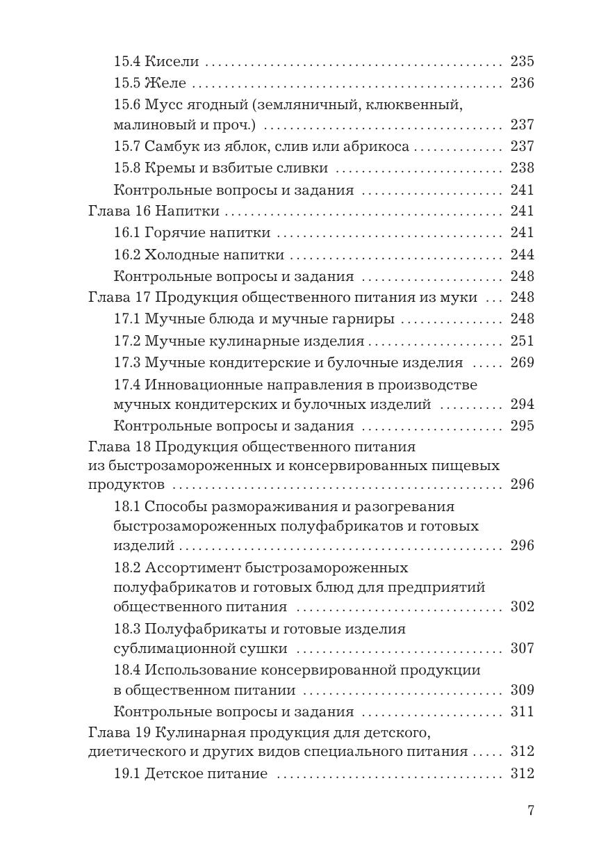 В учебнике изложены общие принципы организации технологического процесса приготовления продукции общественного питания, описаны технология приготовления закусок, блюд, кулинарных и кондитерских изделий, а также пищи для детей, людей преклонного возраста, питание в экстремальных ситуациях и диетическое питание. Для студентов бакалавриата, обучающихся по направлениям подготовки "Технология продукции и организация общественного питания" и "Менеджмент" (профили "Менеджмент гостиничного и ресторанных предприятий", "Менеджмент гостиничного и ресторанного сервиса").