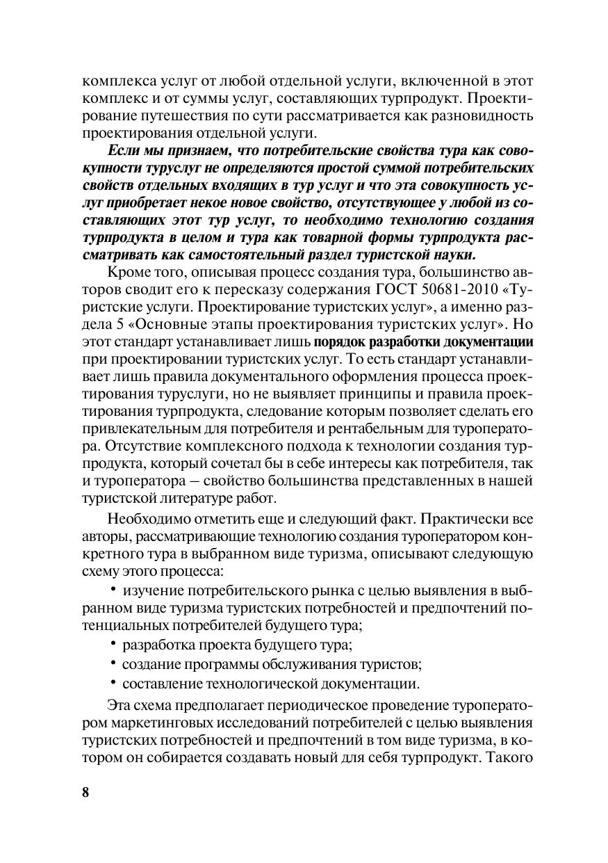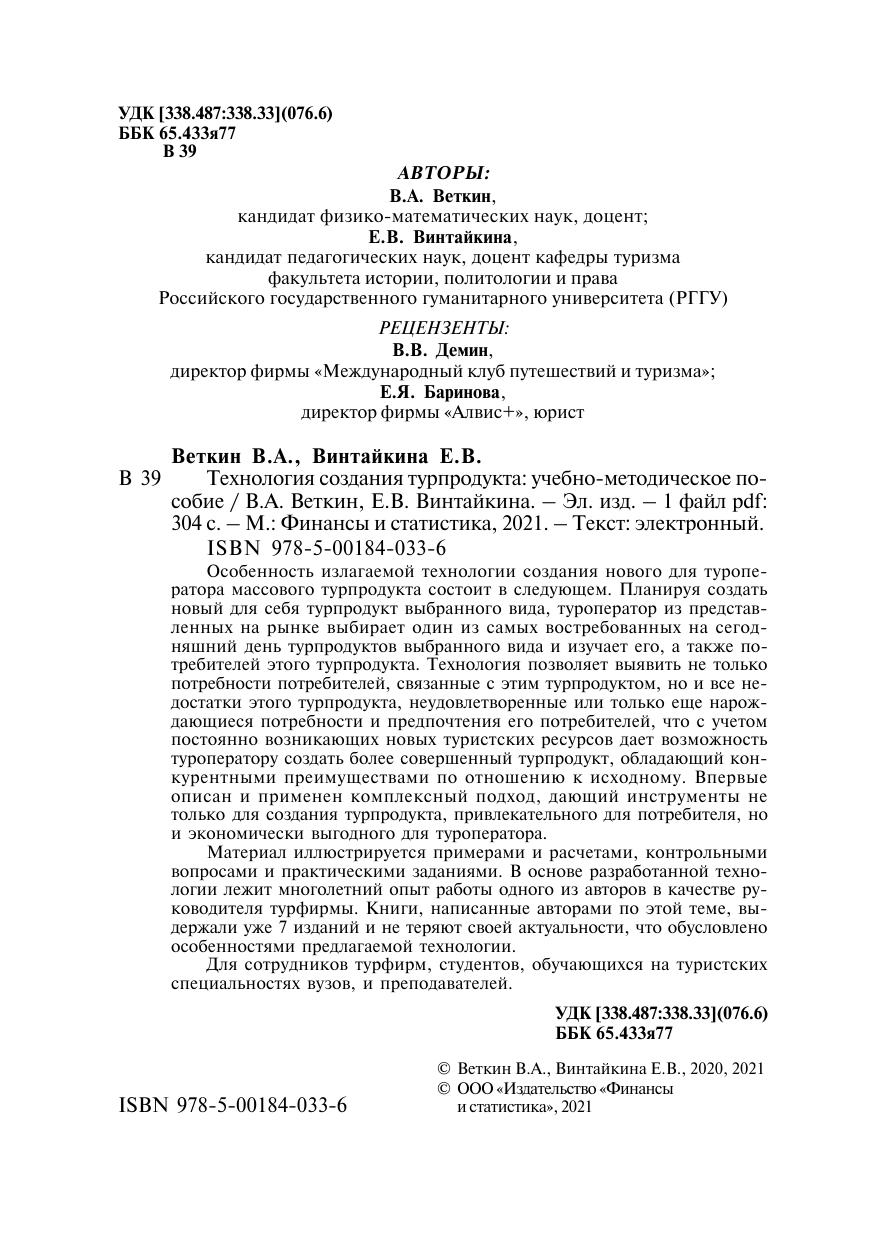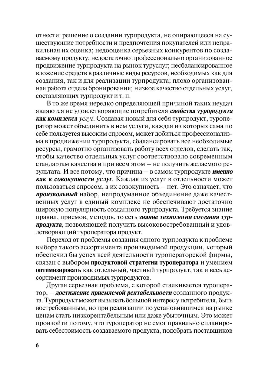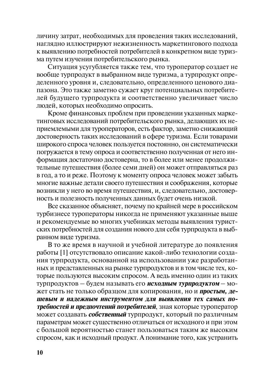 Особенность излагаемой технологии создания нового для туроператора массового турпродукта состоит в следующем. Планируя создать новый для себя турпродукт выбранного вида, туроператор из представленных на рынке выбирает один из самых востребованных на сегодняшний день турпродуктов выбранного вида и изучает его, а также потребителей этого турпродукта. Технология позволяет выявить не только потребности потребителей, связанные с этим турпродуктом, но и все недостатки этого турпродукта, неудовлетворенные или только еще нарождающиеся потребности и предпочтения его потребителей, что с учетом постоянно возникающих новых туристских ресурсов дает возможность туроператору создать более совершенный турпродукт, обладающий конкурентными преимуществами по отношению к исходному. Впервые описан и применен комплексный подход, дающий инструменты не только для создания турпродукта, привлекательного для потребителя, но и экономически выгодного для туроператора. Материал иллюстрируется примерами и расчетами, контрольными вопросами и практическими заданиями. В основе разработанной технологии лежит многолетний опыт работы одного из авторов в качестве руководителя турфирмы. Книги, написанные авторами по этой теме, выдержали уже 7 изданий и не теряют своей актуальности, что обусловлено особенностями предлагаемой технологии.