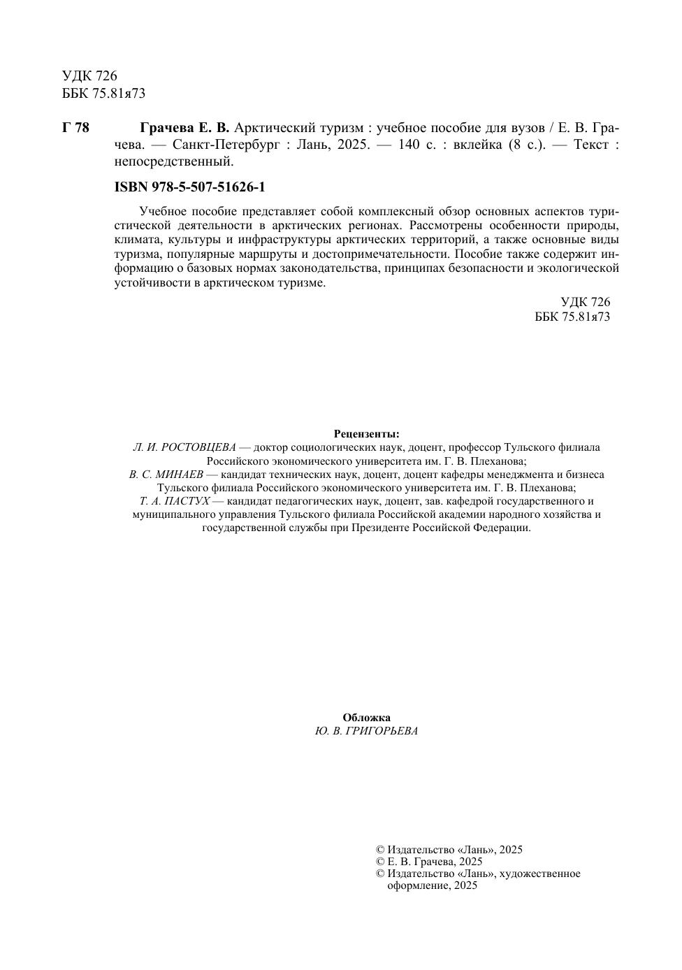 Учебное пособие представляет собой комплексный обзор основных аспектов туристической деятельности в арктических регионах. Рассмотрены особенности природы, климата, культуры и инфраструктуры арктических территорий, а также основные виды туризма, популярные маршруты и достопримечательности. Пособие также содержит информацию о базовых нормах законодательства, принципах безопасности и экологической устойчивости в арктическом туризме.