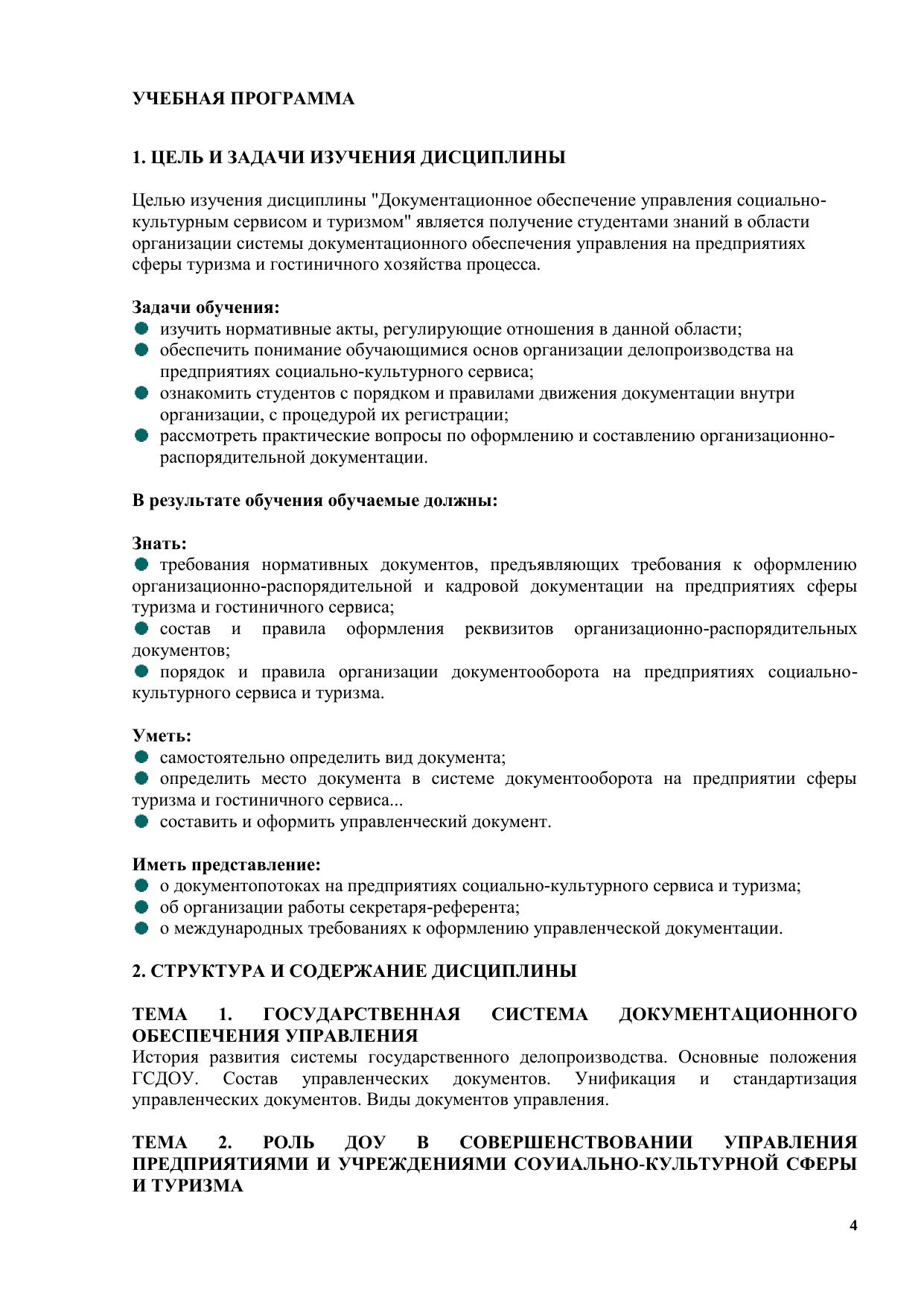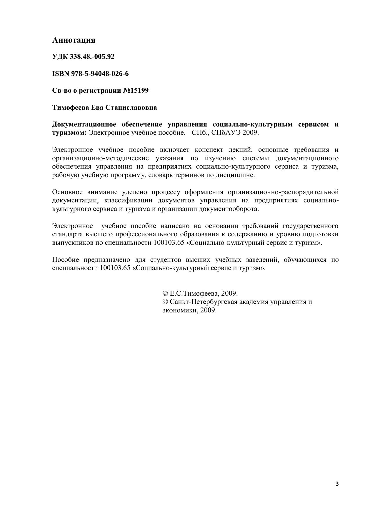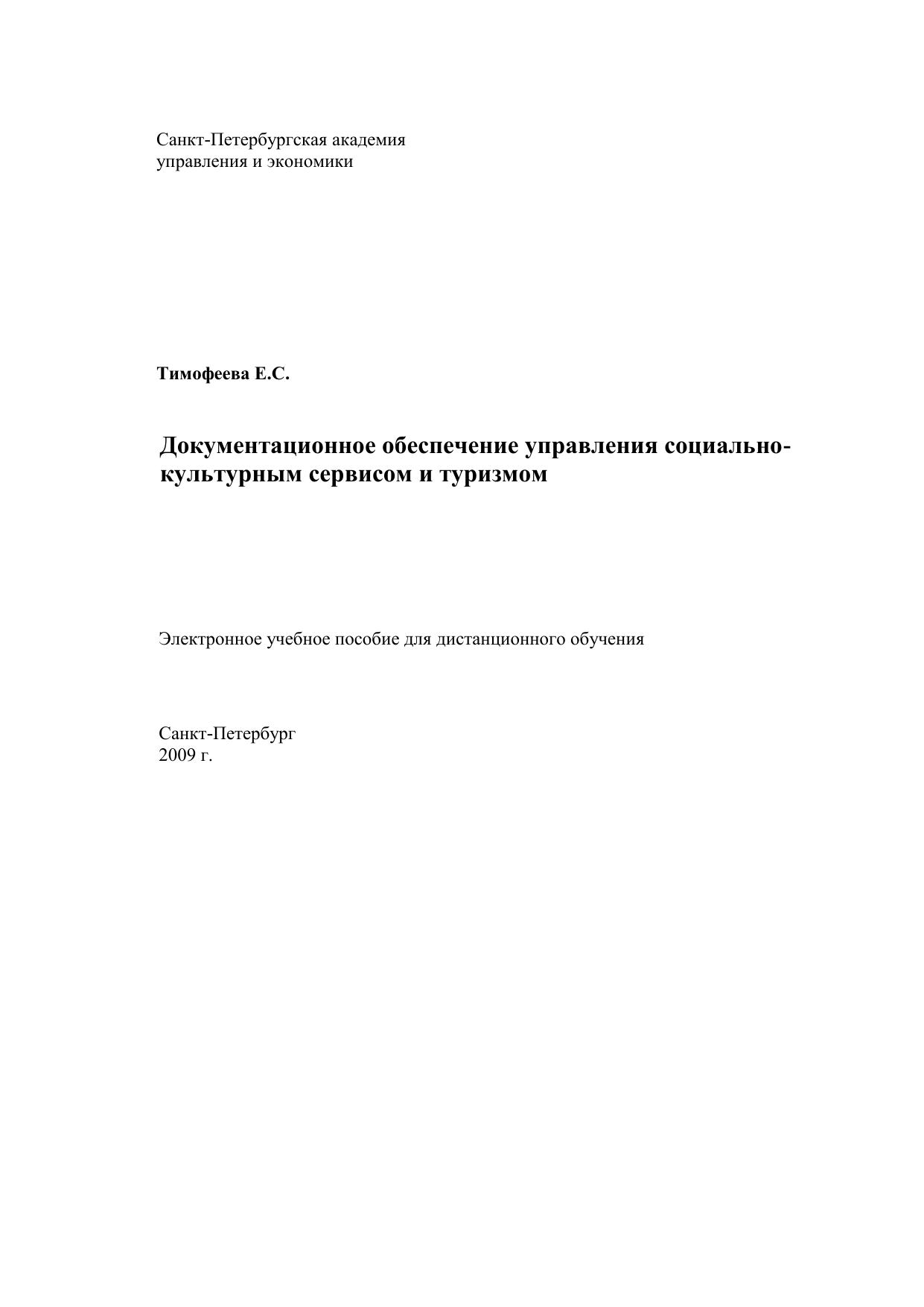 Документационное обеспечение управления социально-культурным сервисом и туризмом: Электронное учебное пособие