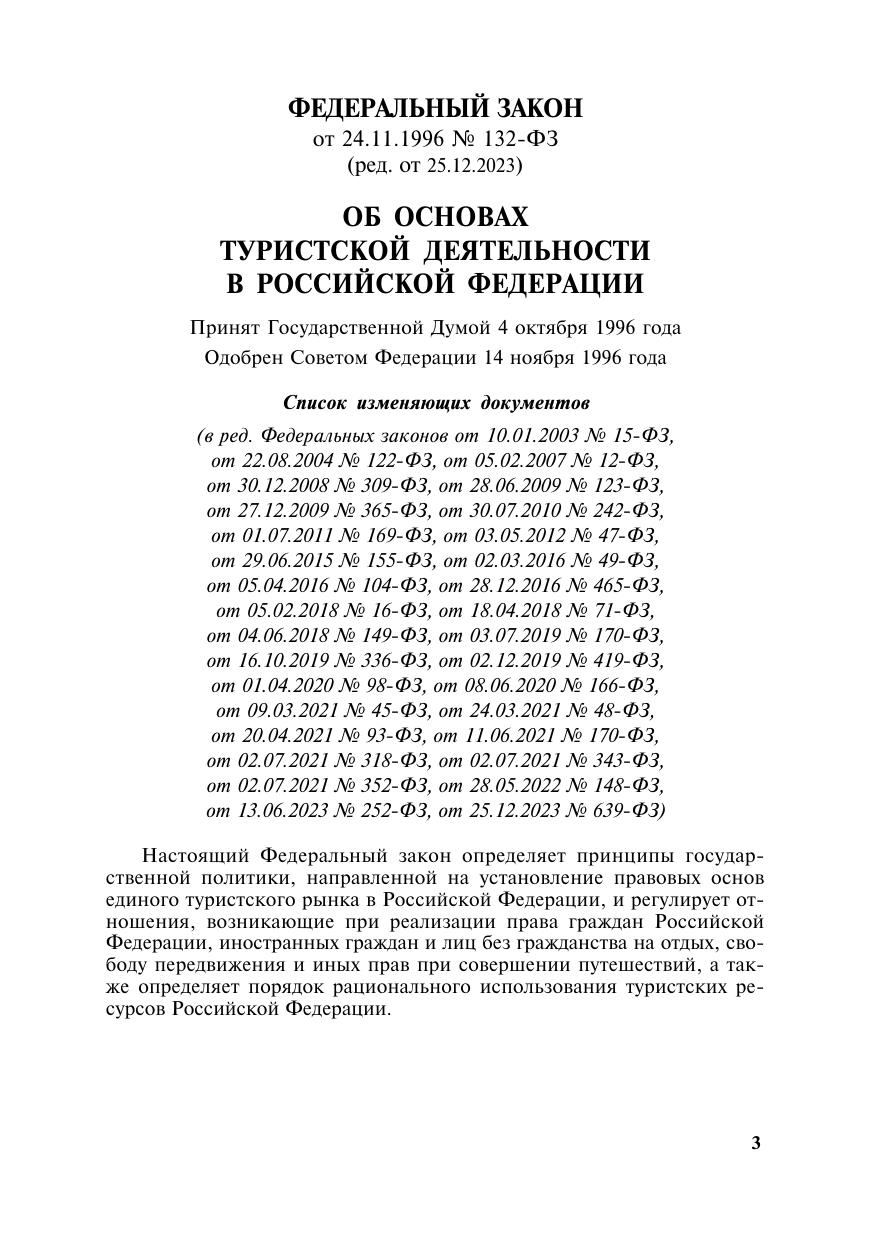Федеральный закон "Об основах туристской деятельности в Российской Федерации" (на 01.01.2024 г.)
