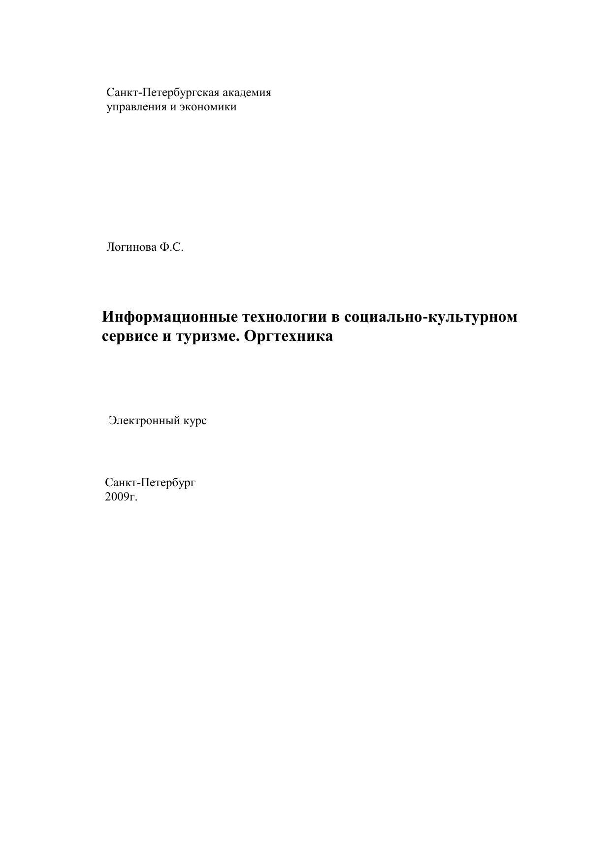 Информационные технологии в социально-культурном сервисе и туризме. Оргтехника: Электронное учебное пособие