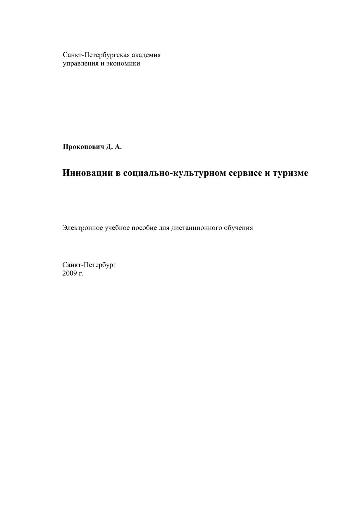 Инновации в социально-культурном сервисе и туризме: Электронное учебное пособие