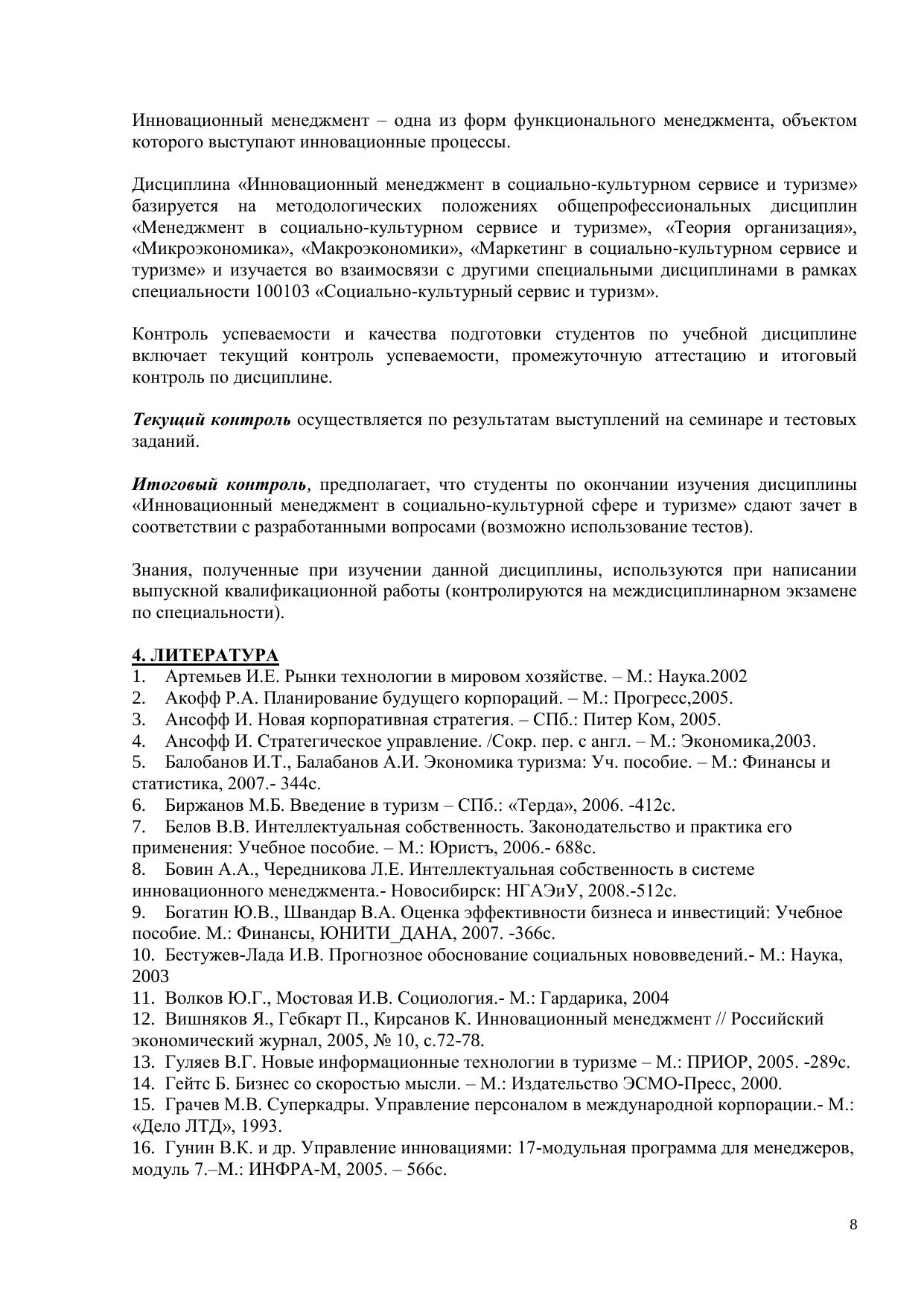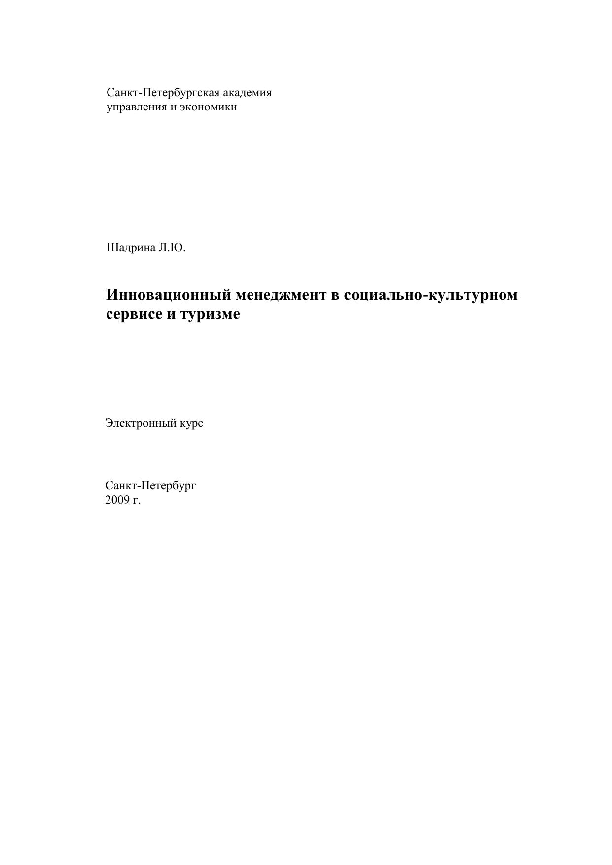 Инновационный менеджмент в социально-культурном сервисе и туризме: Электронное учебное пособие