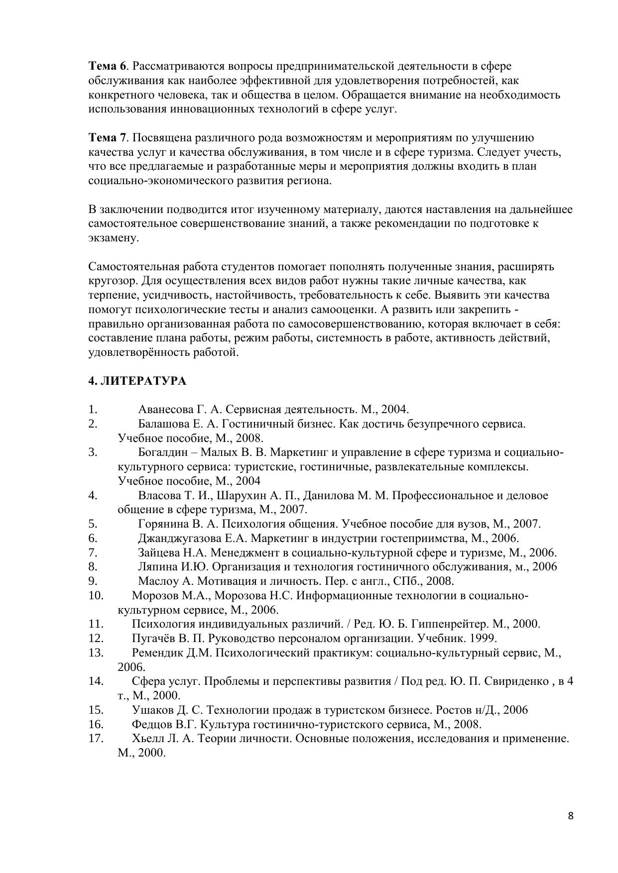 Учебное пособие включает учебную программу дисциплины общие методические рекомендации по изучению дисциплины методические рекомендации по выполнению контрольных работ содержание контролирующих материалов краткое содержание лекций словарь терминов. Основное внимание уделено теории и практике обслуживания в сфере сервиса и туризма проблемам сервисного обслуживания и возможностям их разрешения места и роли предпринимательства в развитии сферы услуг. Пособие предназначено для слушателей и студентов, обучающихся по направлению 100200 «Туризм». Электронное учебное пособие для дистанционного обучения