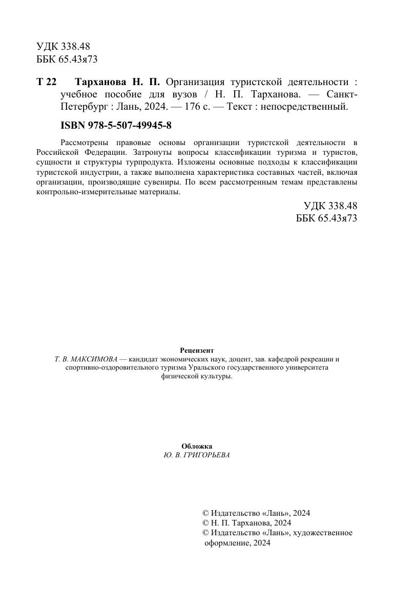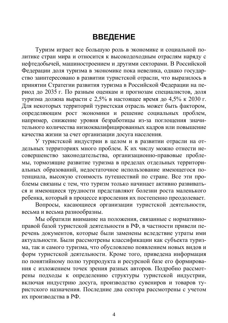 Рассмотрены правовые основы организации туристской деятельности в Российской Федерации. Затронуты вопросы классификации туризма и туристов, сущности и структуры турпродукта. Изложены основные подходы к классификации туристской индустрии, а также выполнена характеристика составных частей, включая организации, производящие сувениры. По всем рассмотренным темам представлены контрольно-измерительные материалы.