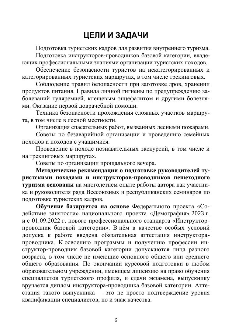 В пособии на основании обобщения полувековой практики организации и проведения туристских походов автор приводит рекомендации, направленные на безаварийное их проведение. Приведены примеры защиты окружающей среды и организации походного быта. Пособие будет полезно для подготовки инструкторов-проводников, работы предпринимателей по развитию самозанятости, организующим трекинговые, спортивные, семейные походы и походы с учащимися.