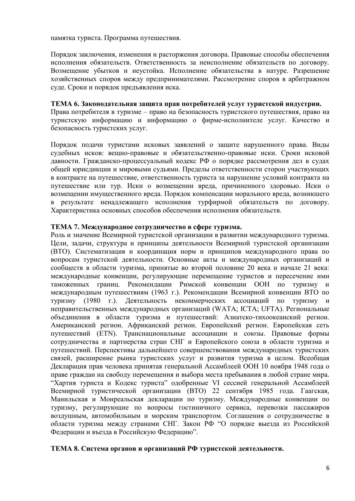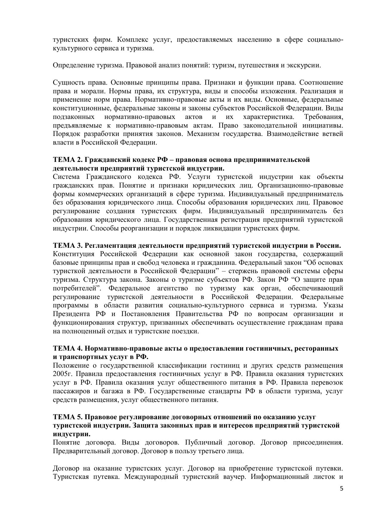 Правовое регулирование в туризме: Электронное учебное пособие