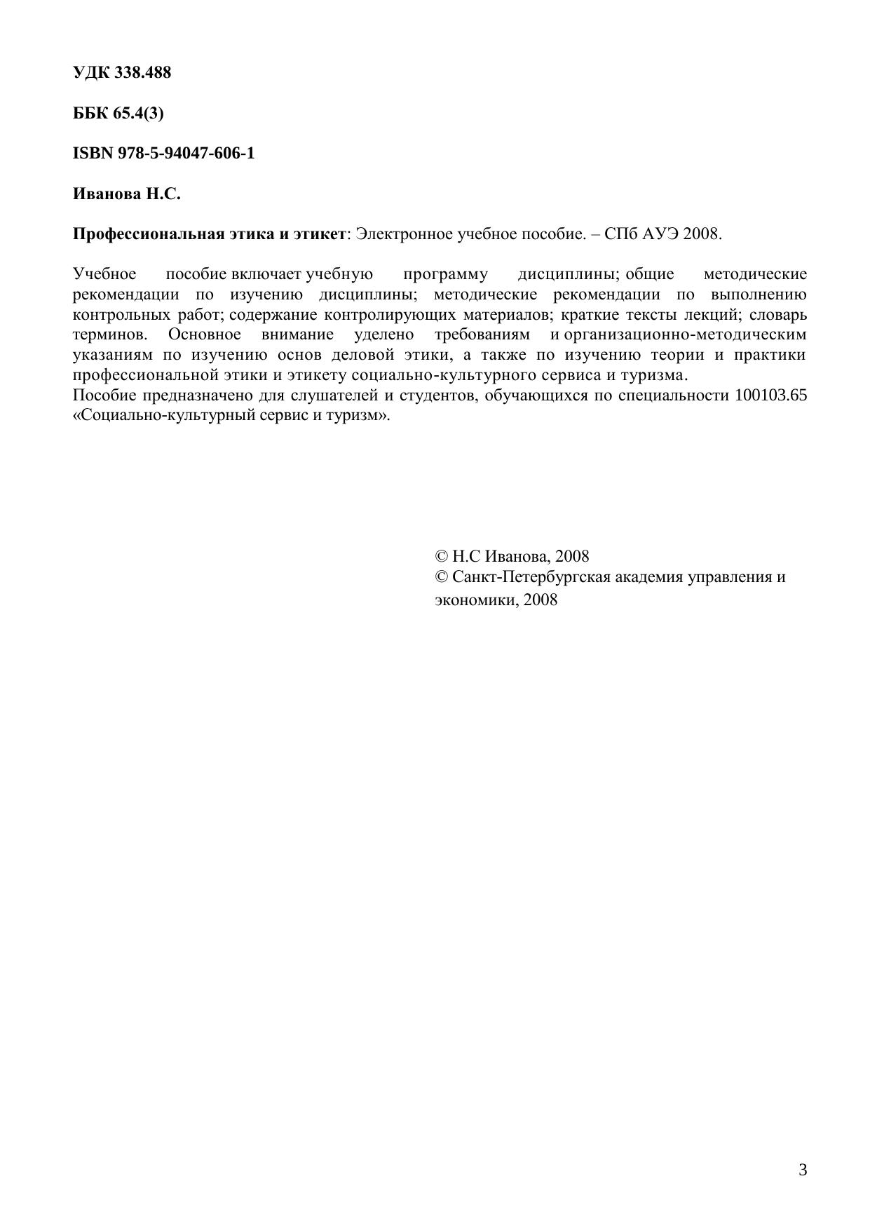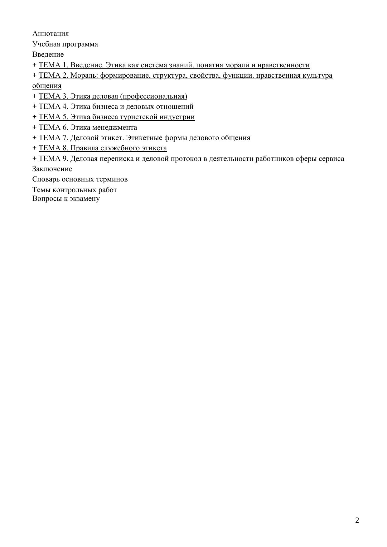 Учебное пособие включает учебную программу дисциплины общие методические рекомендации по изучению дисциплины методические рекомендации по выполнению контрольных работ содержание контролирующих материалов краткие тексты лекций словарь терминов. Основное внимание уделено требованиям и организационно-методическим указаниям по изучению основ деловой этики, а также по изучению теории и практики профессиональной этики и этикету социально-культурного сервиса и туризма. Пособие предназначено для слушателей и студентов, обучающихся по специальности 100103.65 «Социально-культурный сервис и туризм». Электронное учебное пособие для дистанционного обучения