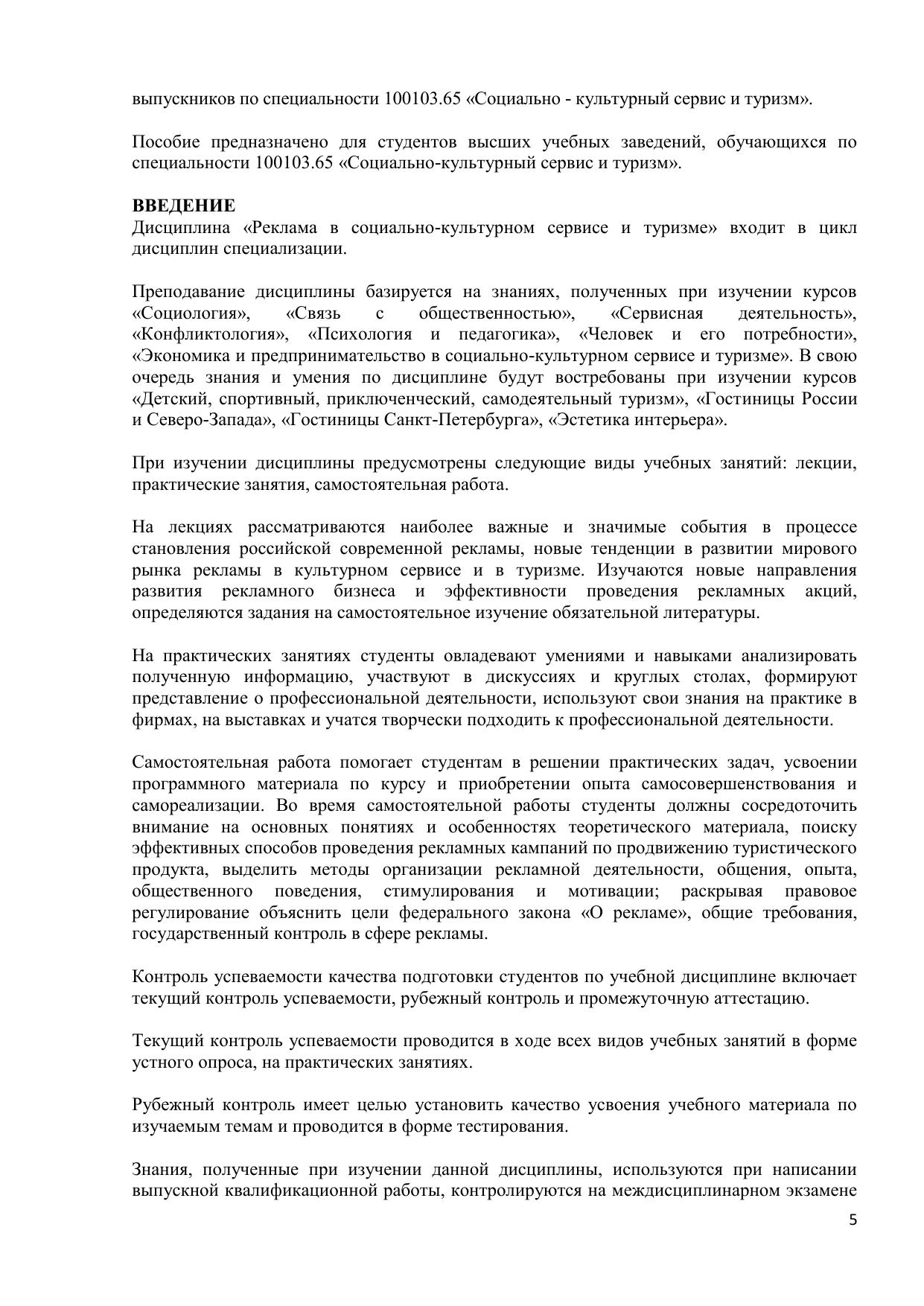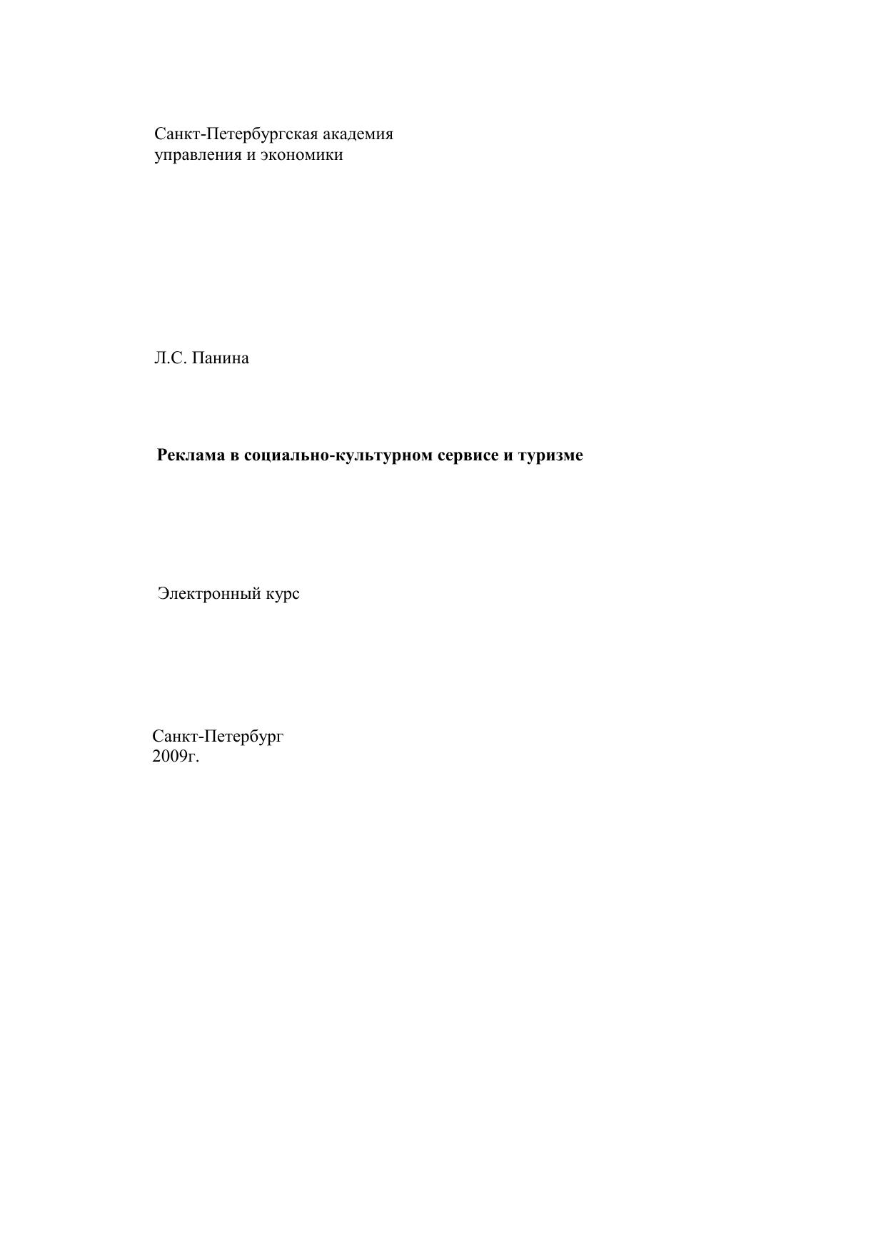 Реклама в социально-культурном сервисе и туризме: Электронное учебное пособие