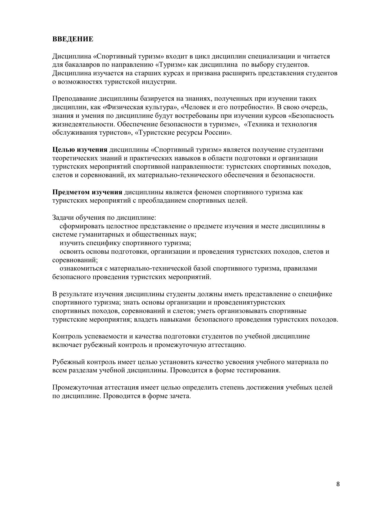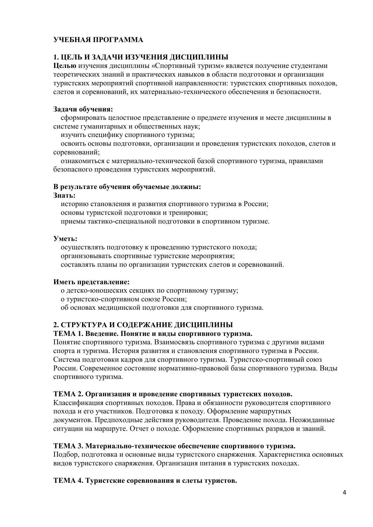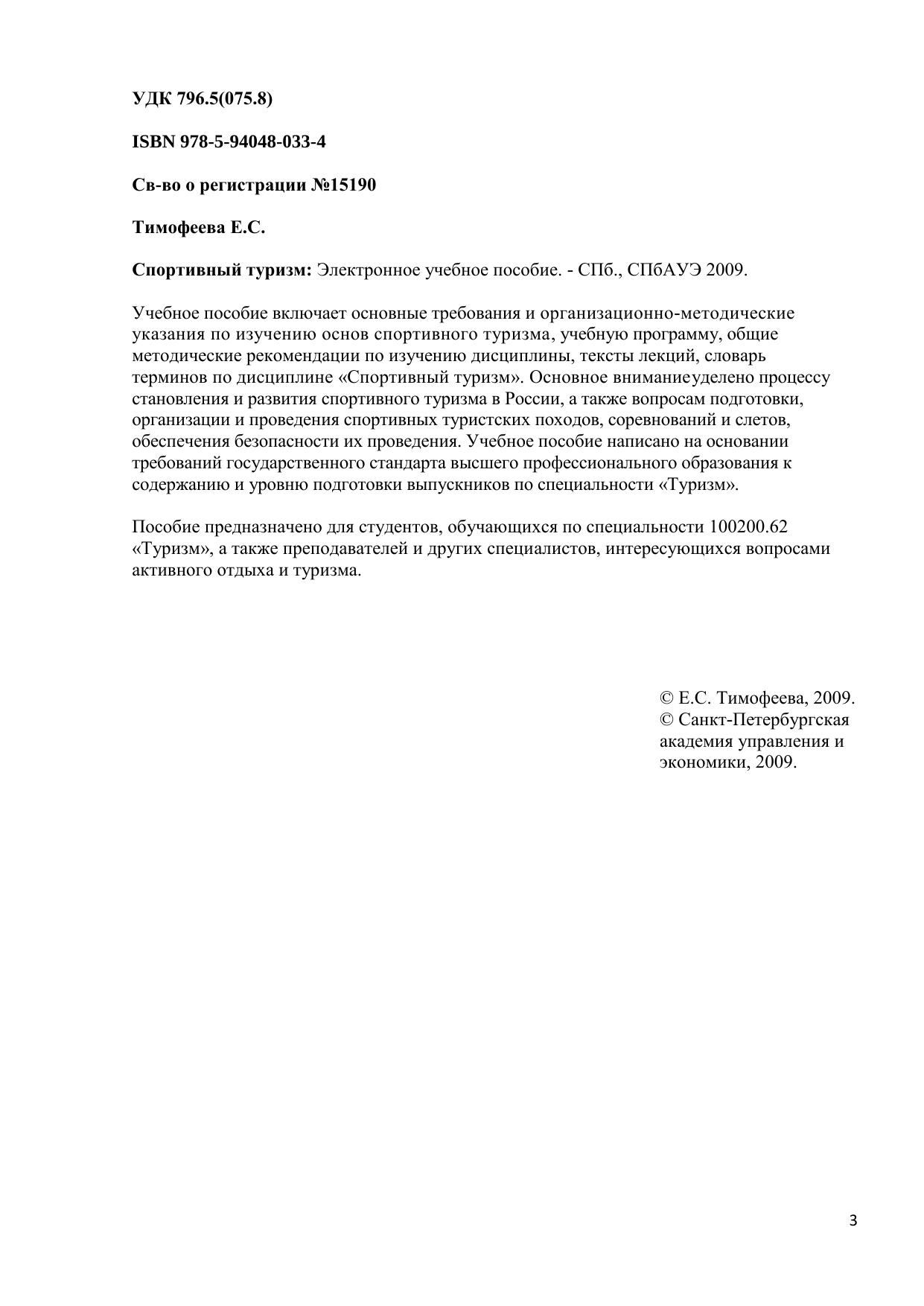 Учебное пособие включает основные требования и организационно-методические указания по изучению основ спортивного туризма, учебную программу, общие методические рекомендации по изучению дисциплины, тексты лекций, словарь терминов по дисциплине «Спортивный туризм». Основное внимание уделено процессу становления и развития спортивного туризма в России, а также вопросам подготовки, организации и проведения спортивных туристских походов, соревнований и слетов, обеспечения безопасности их проведения. Учебное пособие написано на основании требований государственного стандарта высшего профессионального образования к содержанию и уровню подготовки выпускников по специальности «Туризм». Пособие предназначено для студентов, обучающихся по специальности 100200.62 «Туризм», а также преподавателей и других специалистов, интересующихся вопросами активного отдыха и туризма. Электронное учебное пособие для дистанционного обучения
