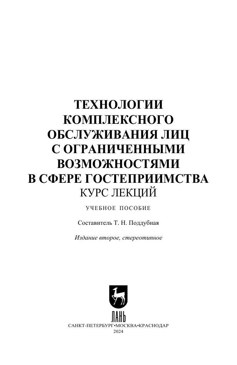 Технологии комплексного обслуживания лиц с ограниченными возможностями в сфере гостеприимства. Курс лекций Поддубная Т. Н.