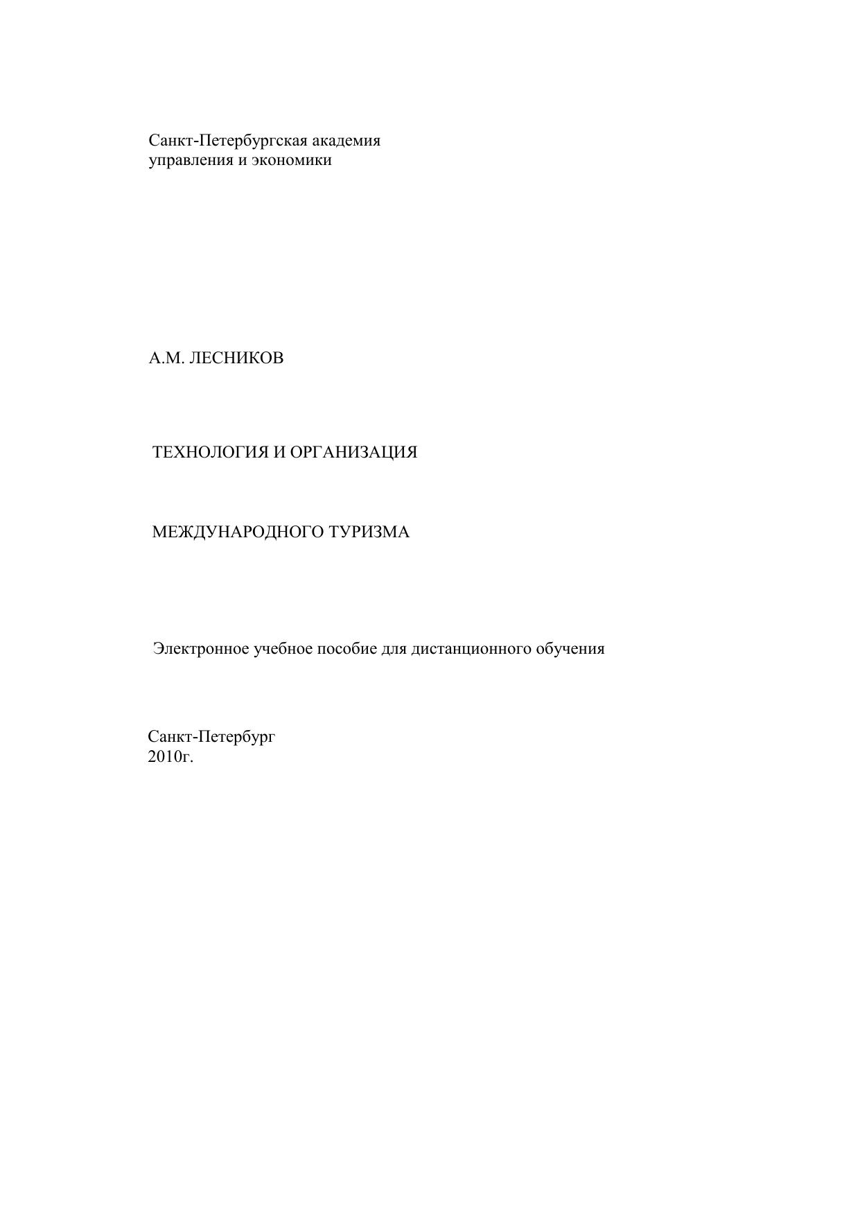 Технология и организация международного туризма