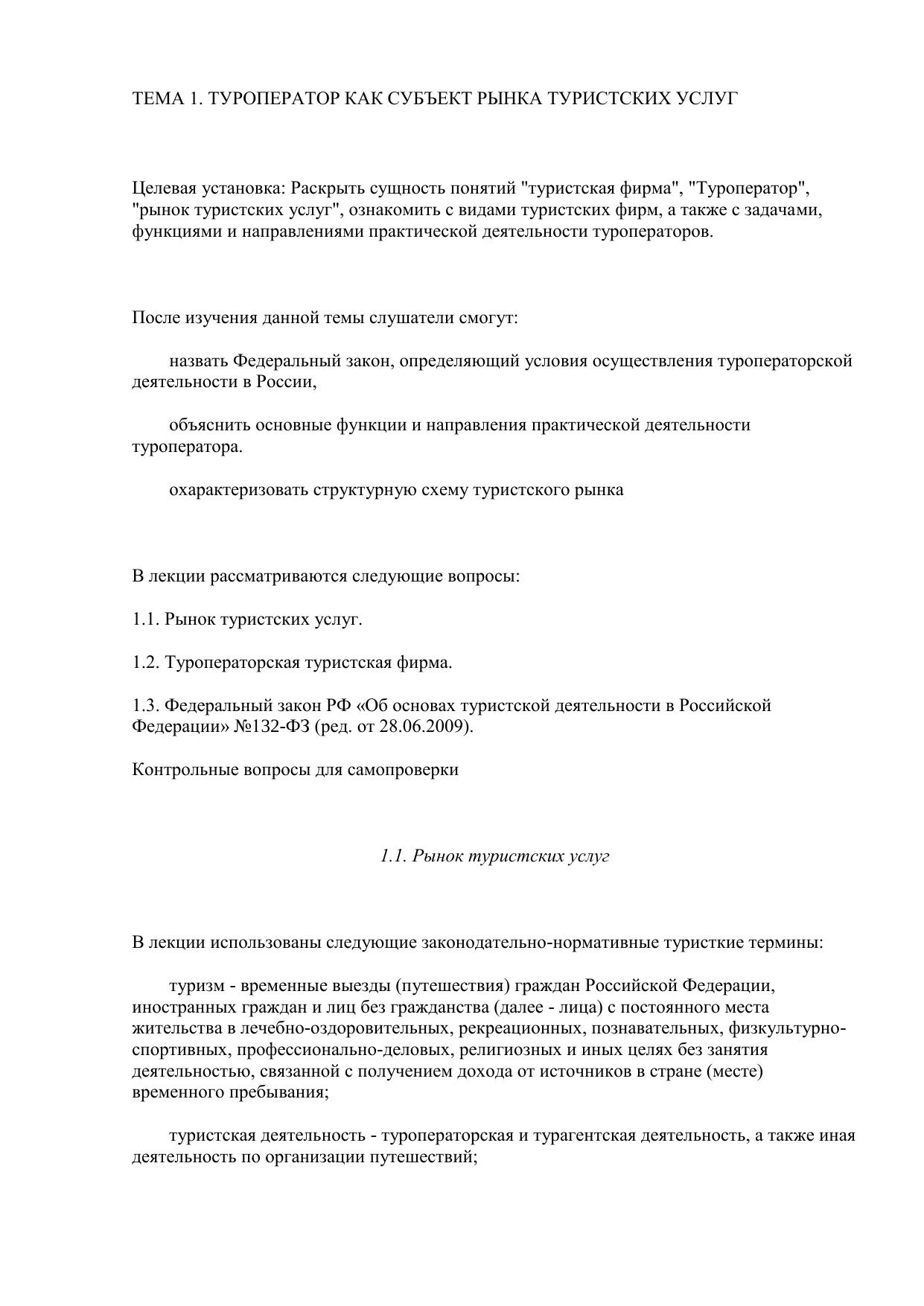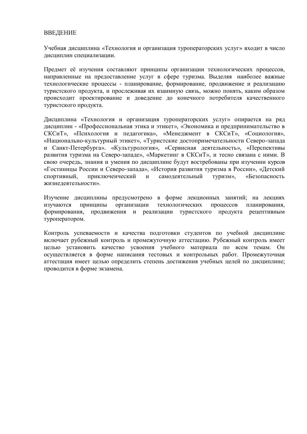 Технология и организация туроператорских услуг