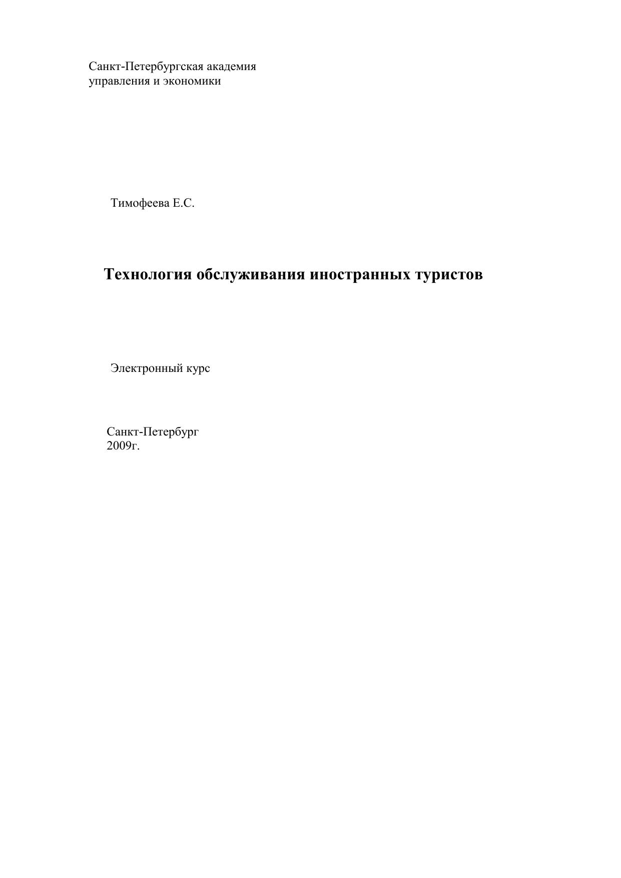 Технология обслуживания иностранных туристов: Электронное учебное пособие
