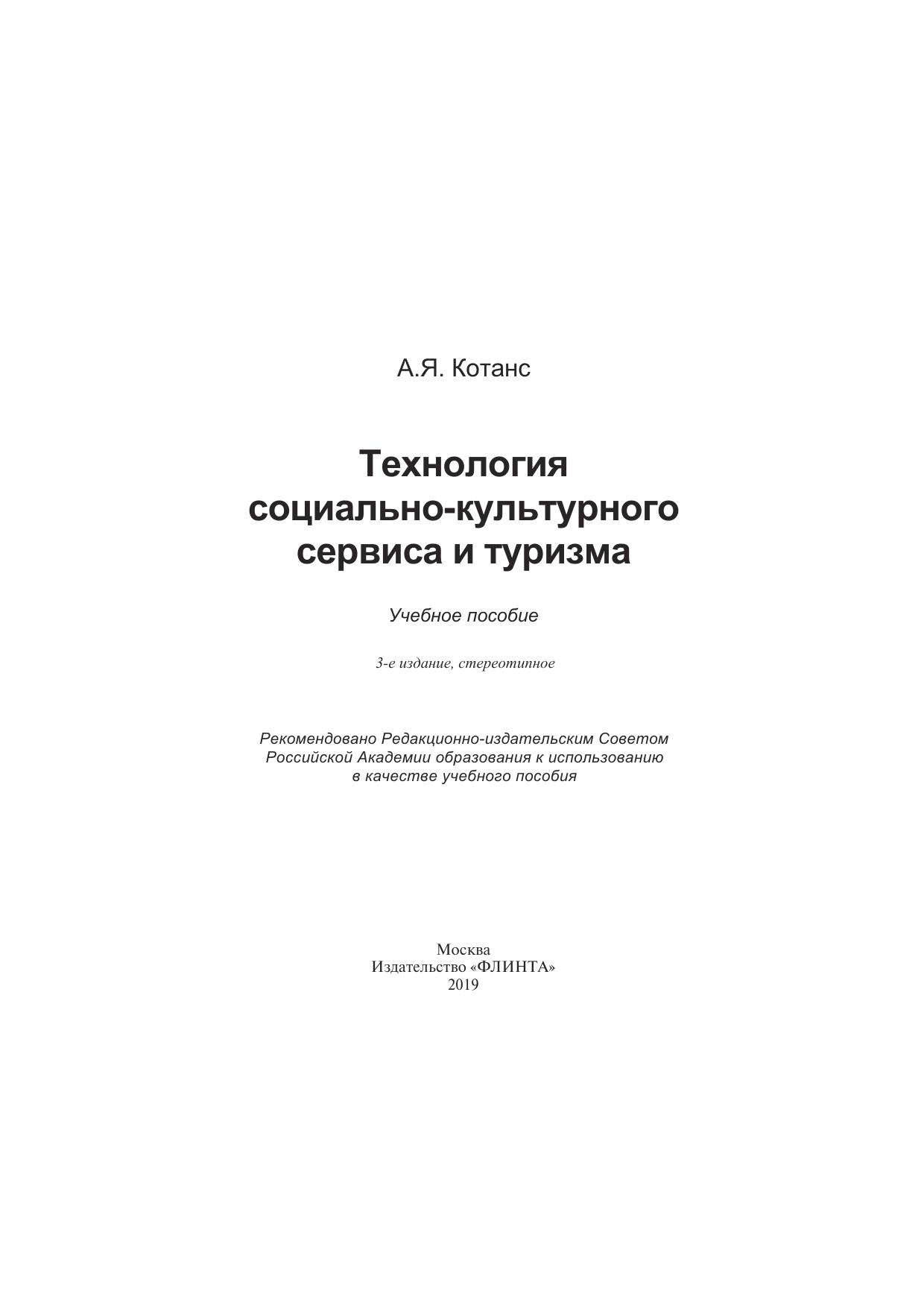 Технология социально-культурного сервиса и туризма