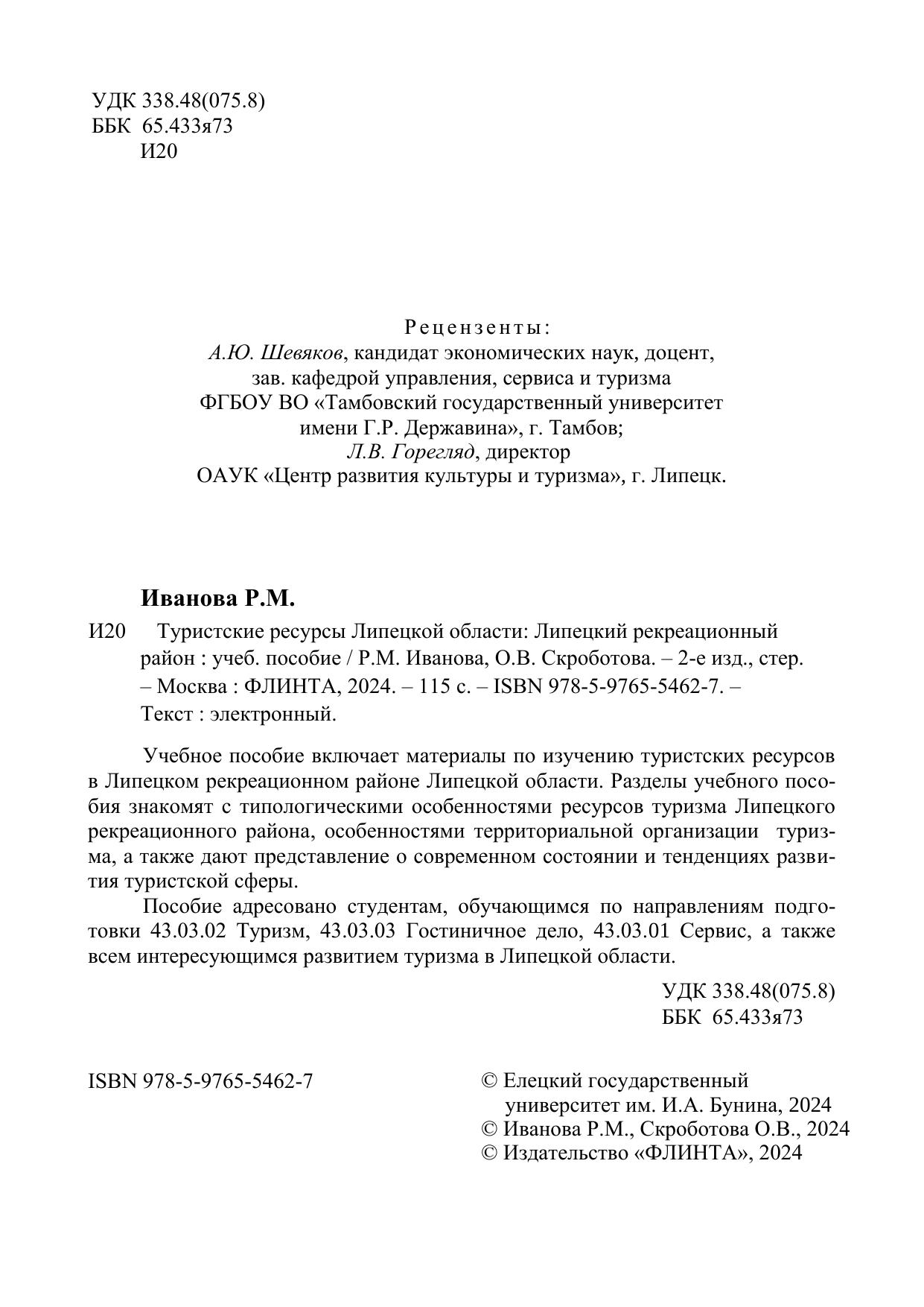 Учебное пособие включает материалы по изучению туристских ресурсов в Липецком рекреационном районе Липецкой области. Разделы учебного пособия знакомят с типологическими особенностями ресурсов туризма Липецкого рекреационного района, особенностями территориальной организации туризма, а также дают представление о современном состоянии и тенденциях развития туристской сферы. Пособие адресовано студентам, обучающимся по направлениям подготовки 43.03.02 Туризм, 43.03.03 Гостиничное дело, 43.03.01 Сервис, а также всем интересующимся развитием туризма в Липецкой области.