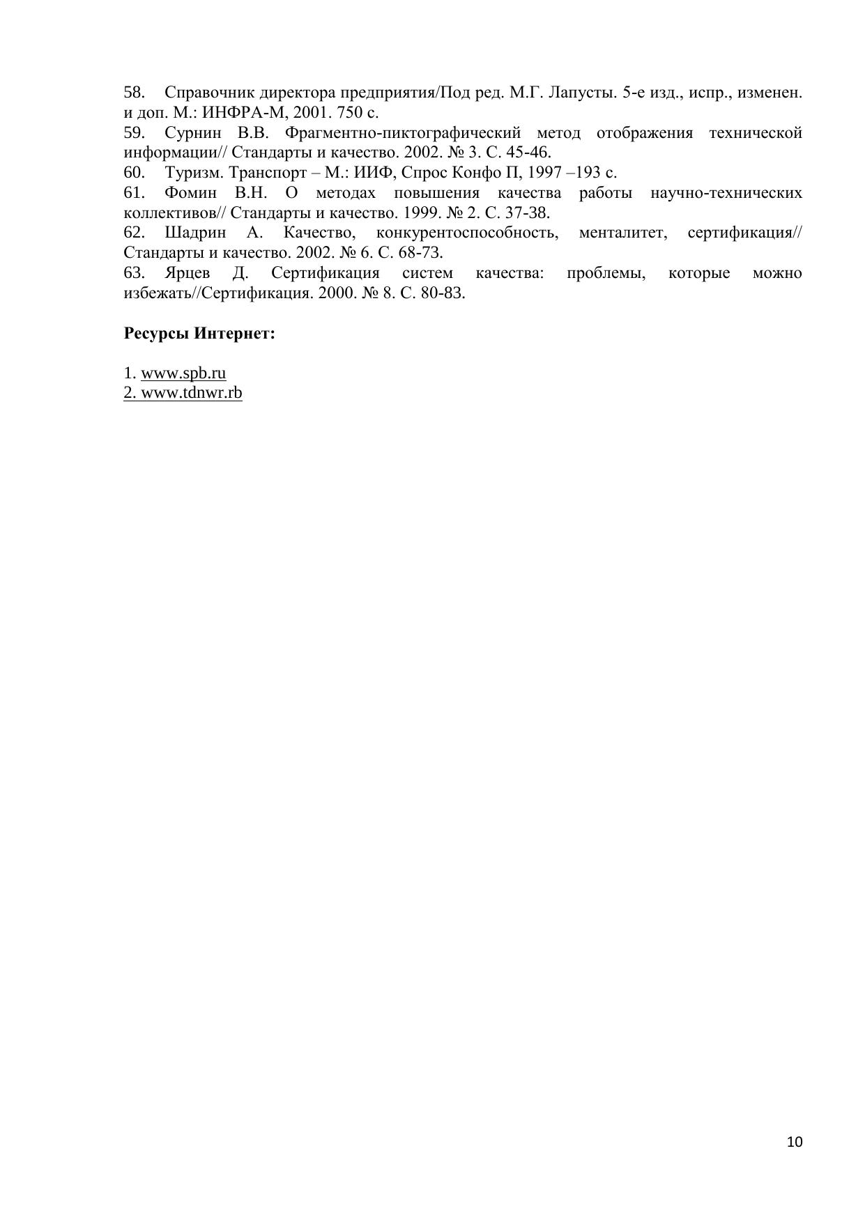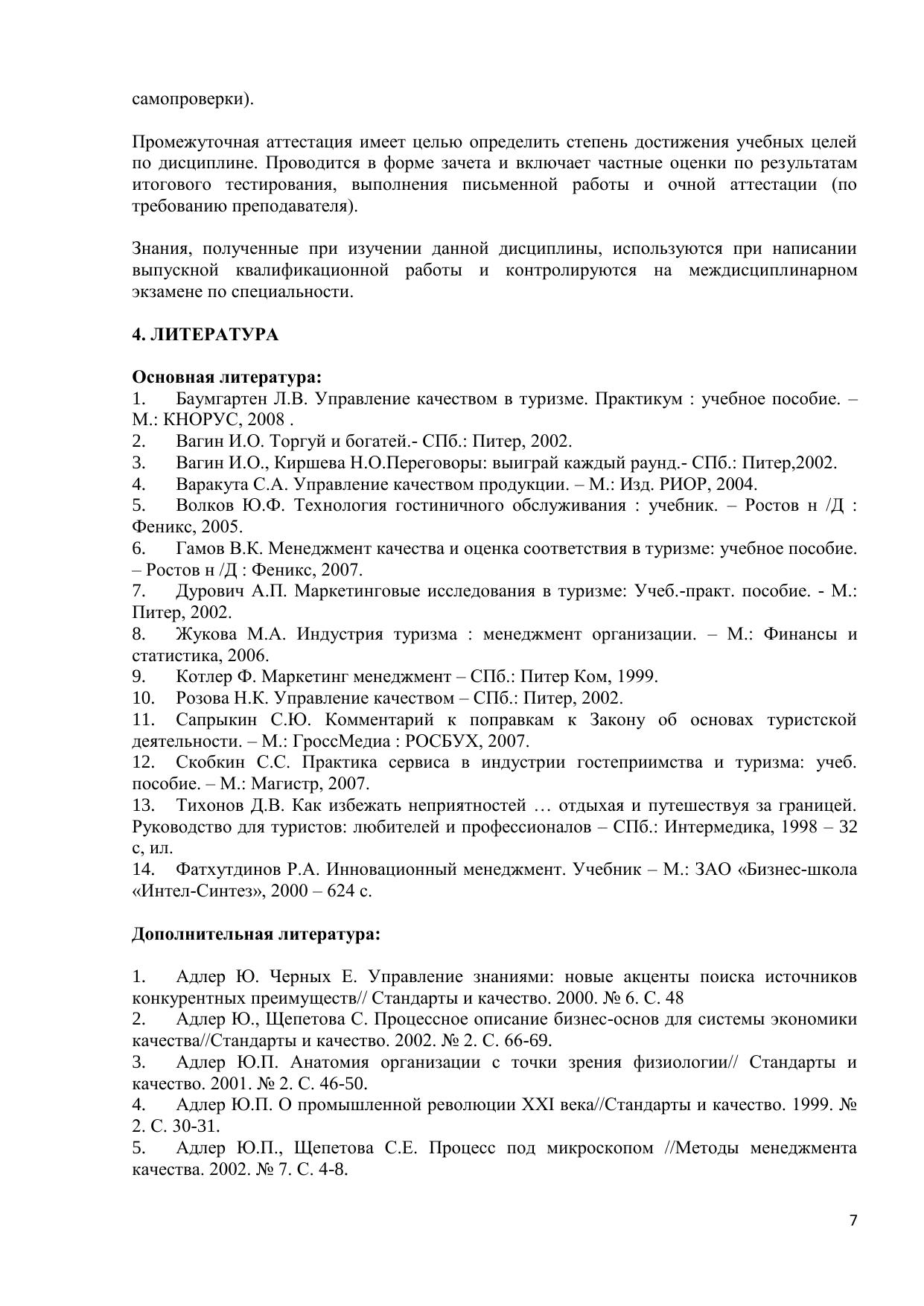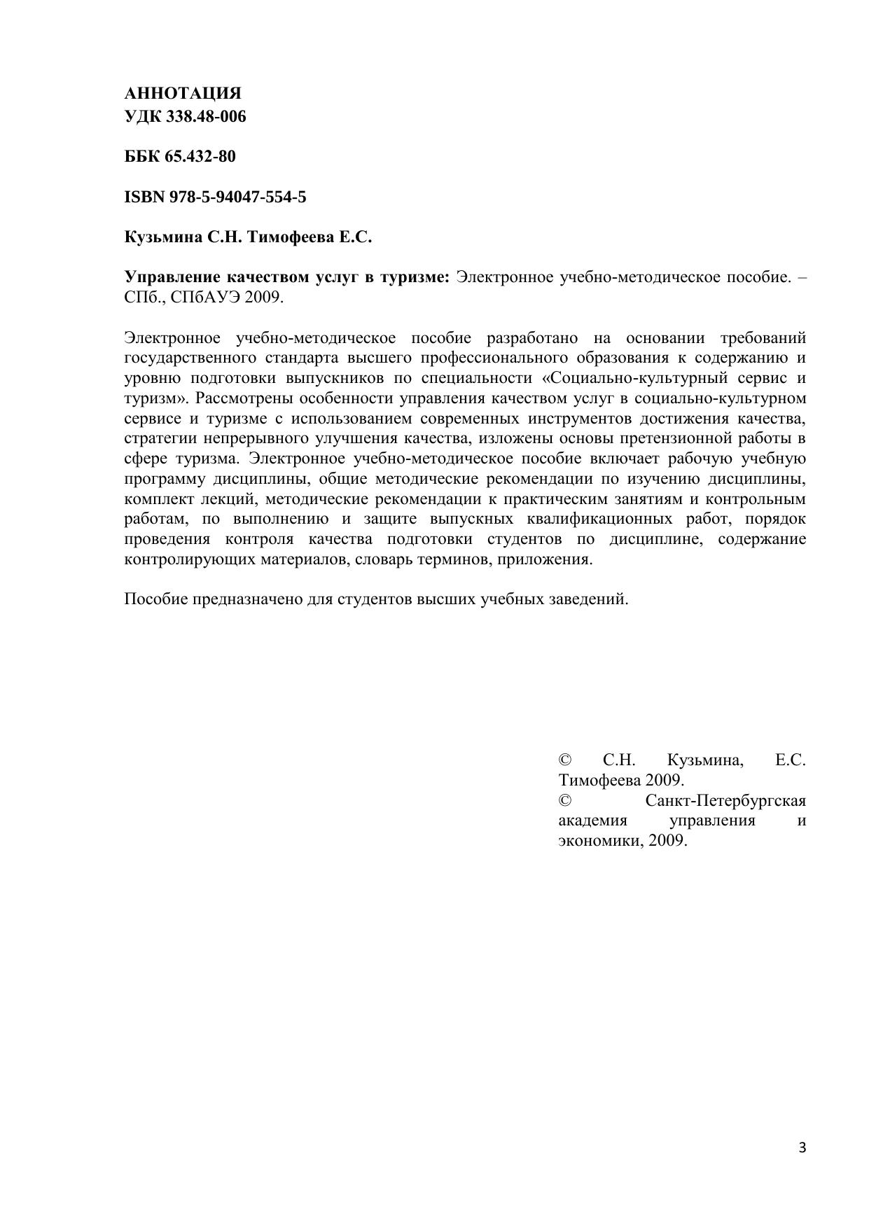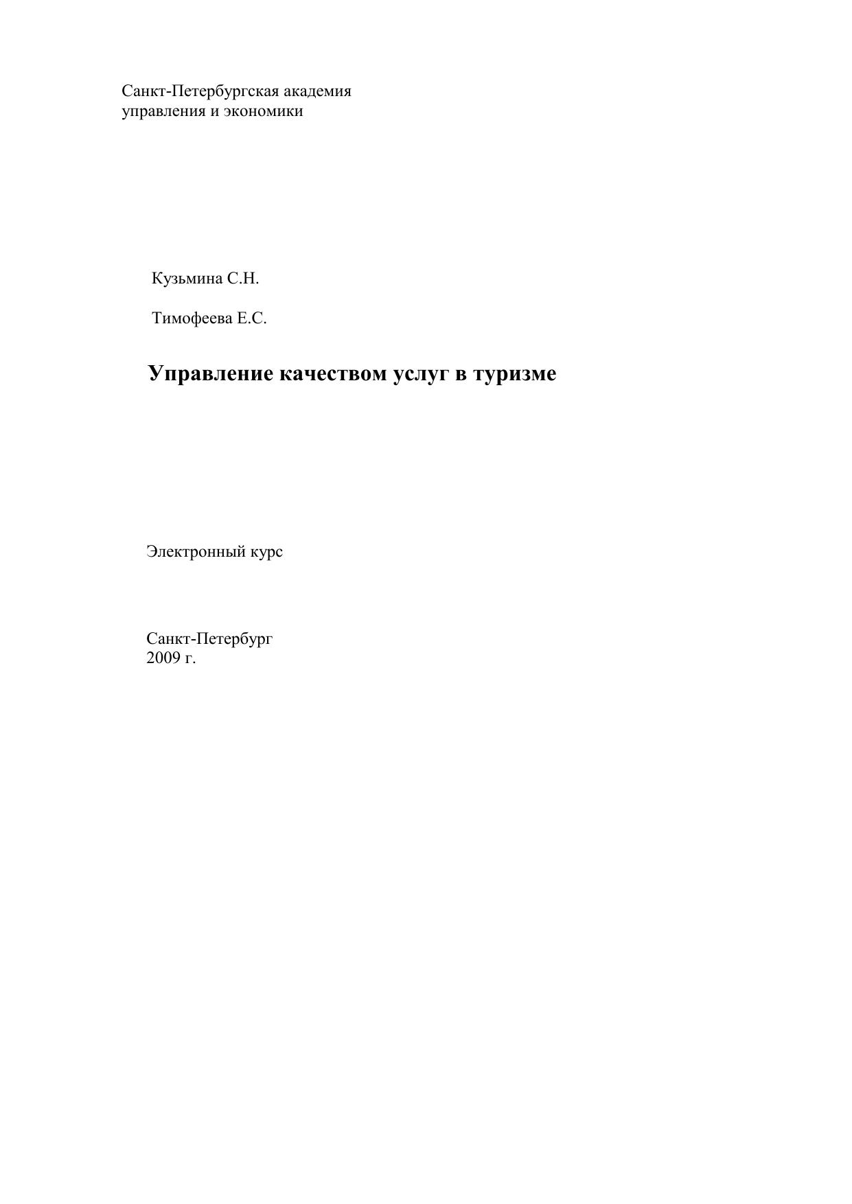 Управление качеством услуг в туризме: Электронное учебно-методическое пособие