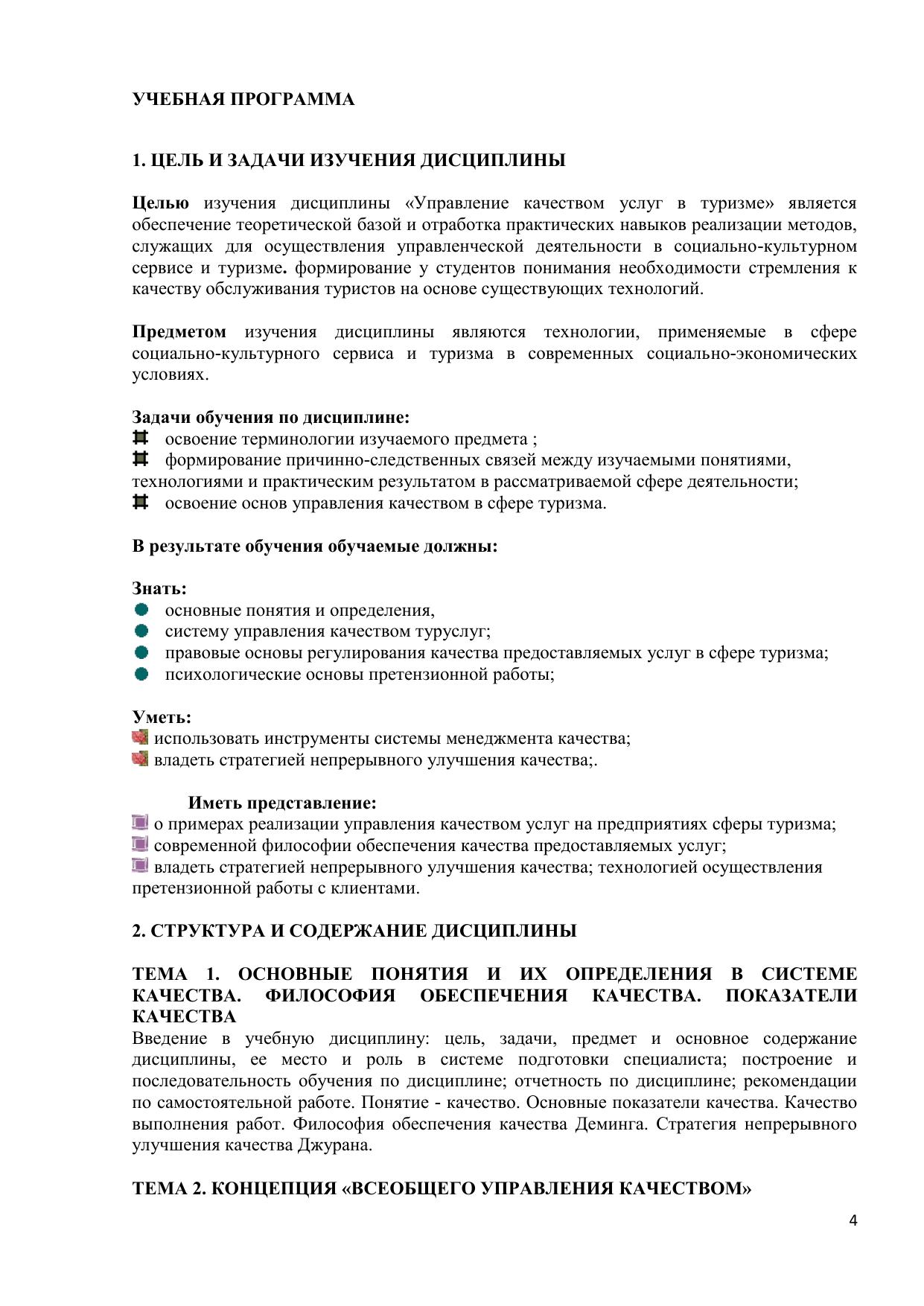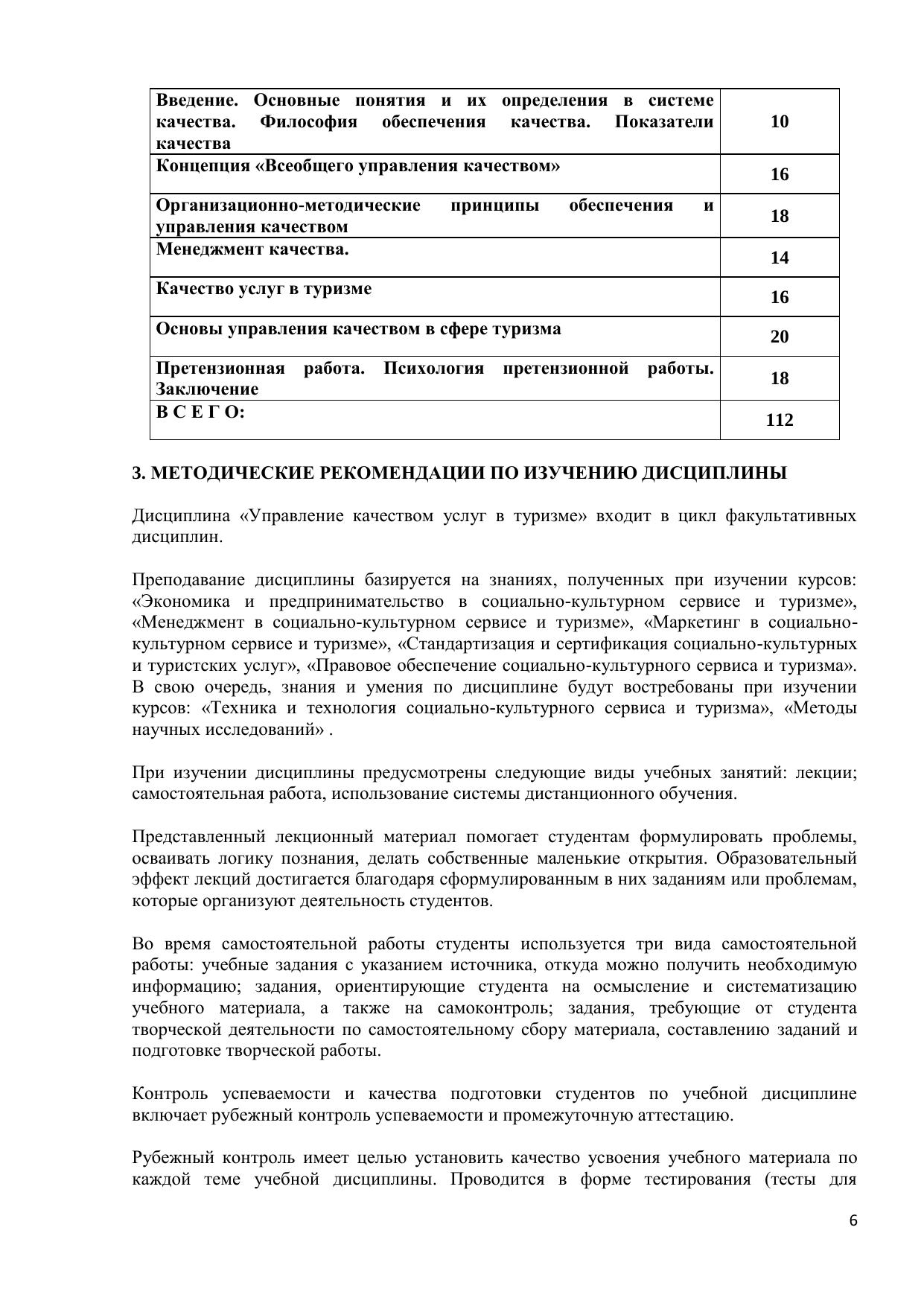 Электронное учебно-методическое пособие разработано на основании требований государственного стандарта высшего профессионального образования к содержанию и уровню подготовки выпускников по специальности «Социально-культурный сервис и туризм». Рассмотрены особенности управления качеством услуг в социально-культурном сервисе и туризме с использованием современных инструментов достижения качества, стратегии непрерывного улучшения качества, изложены основы претензионной работы в сфере туризма. Электронное учебно-методическое пособие включает рабочую учебную программу дисциплины, общие методические рекомендации по изучению дисциплины, комплект лекций, методические рекомендации к практическим занятиям и контрольным работам, по выполнению и защите выпускных квалификационных работ, порядок проведения контроля качества подготовки студентов по дисциплине, содержание контролирующих материалов, словарь терминов, приложения. Пособие предназначено для студентов высших учебных заведений. Электронное учебное пособие для дистанционного обучения