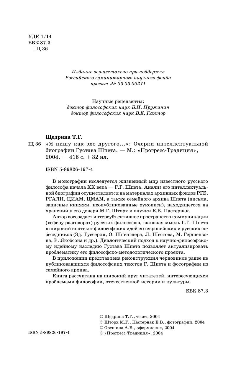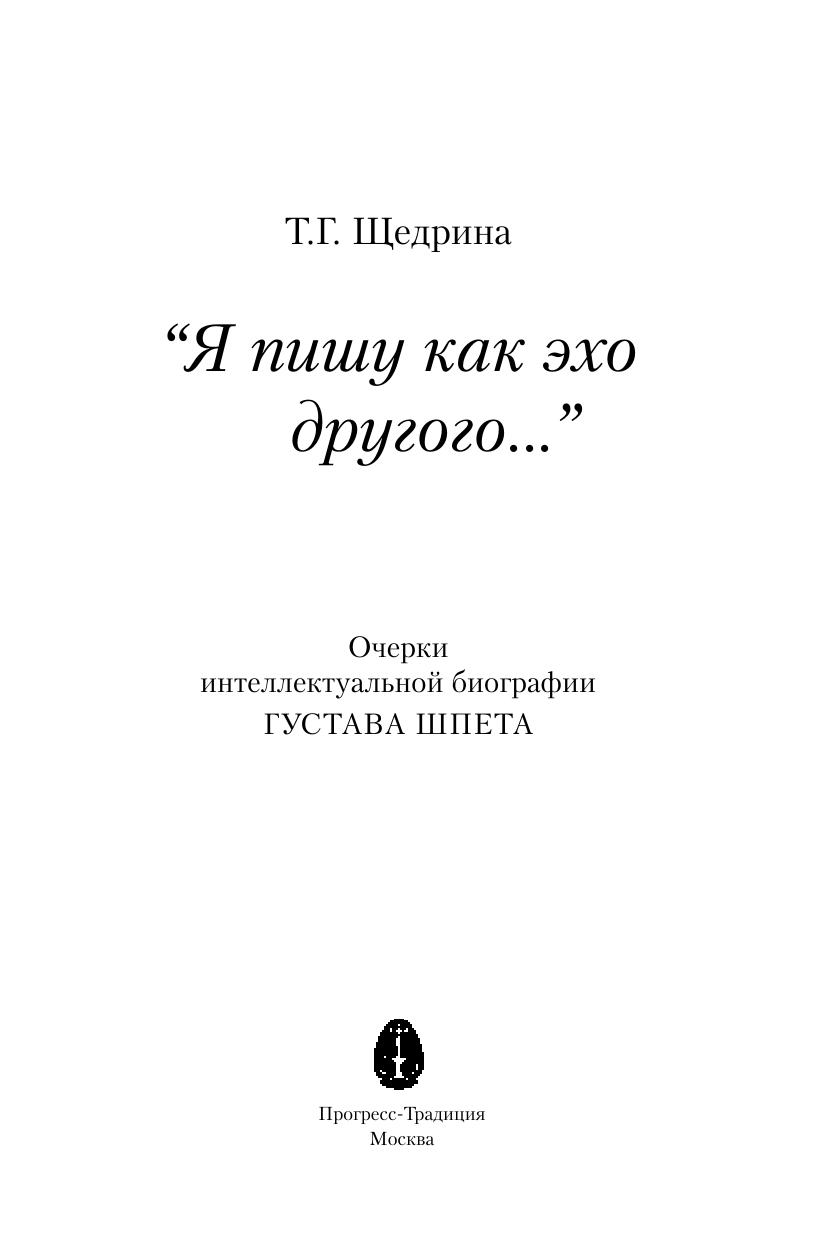 "Я пишу как эхо другого...": Очерки интеллектуальной биографии Густава Шпета