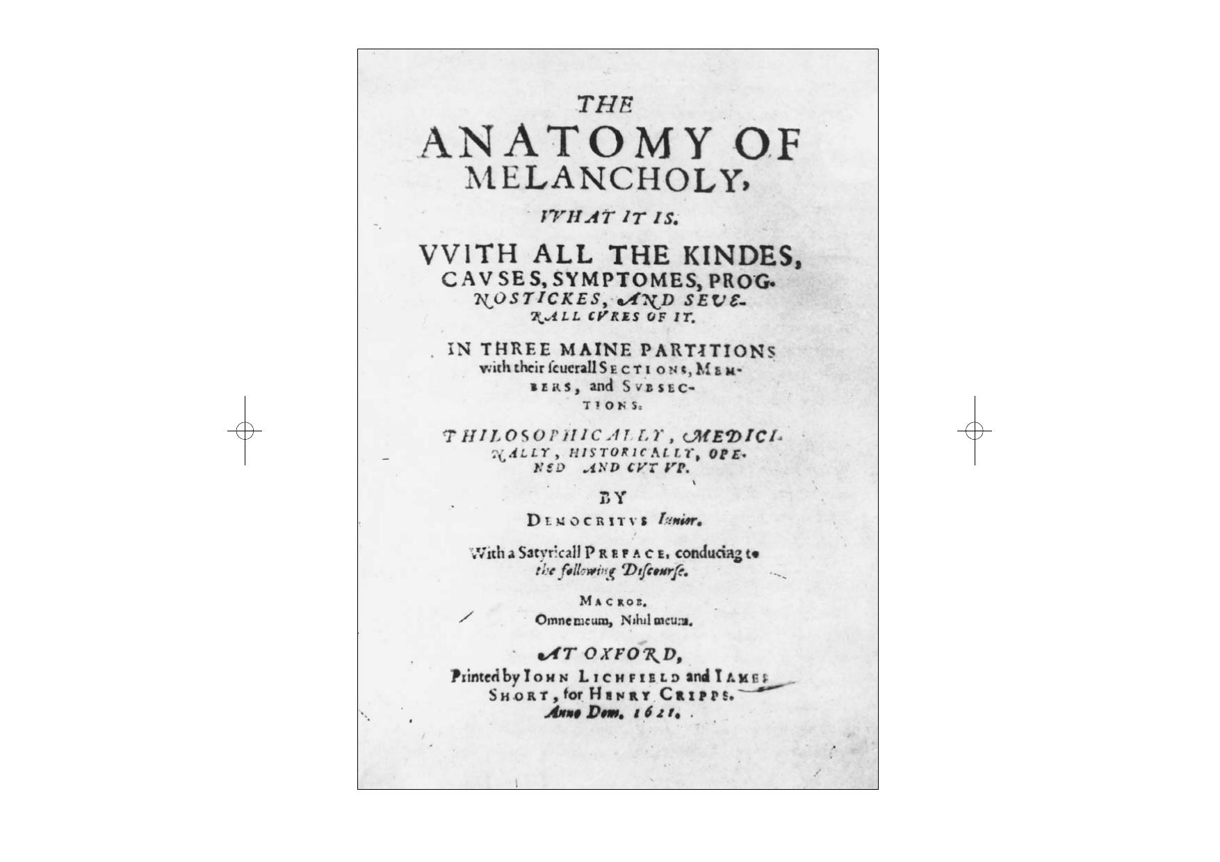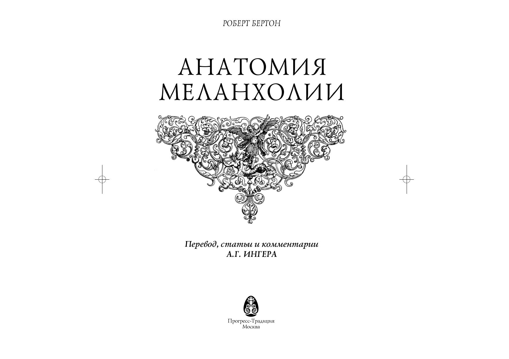 Знаменитая, но до сих пор неизвестная отечественному читателю, книга английского мыслителя XVII века впервые издается в русском переводе. Что такое меланхолия? Как соотносится она с умственными расстройствами — слабоумием и сумасшествием, бешенством и ликантропей? Как порождают меланхолию колдовство и магия, звезды и приметы, пища и сон, удовольствие и печаль, страсти и волнения, бедность и богатство, себялюбие и тщеславие, любовь к знаниям и чрезмерные занятия наукой? Сущность и причины меланхолии автор рассматривает, говоря современным языком, как философ и социолог, психолог и психиатр, с привлечением огромного количества литературных источников — от Античности до Нового времени.