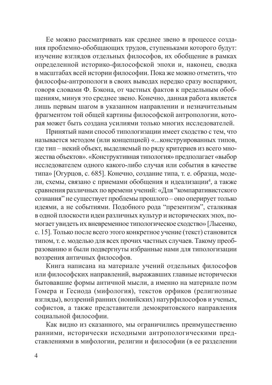В монографии впервые в нашей историко-философской литературе предпринято обобщенно-проблемное изложение античных представлений о человеке на основе выделения и характеристики мифологического, религиозного, натурфилософского и социокультурного типов антропологии. Для преподавателей, студентов и всех интересующихся историей философских воззрений на человека.