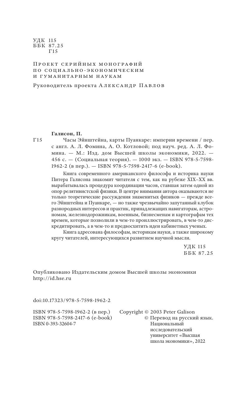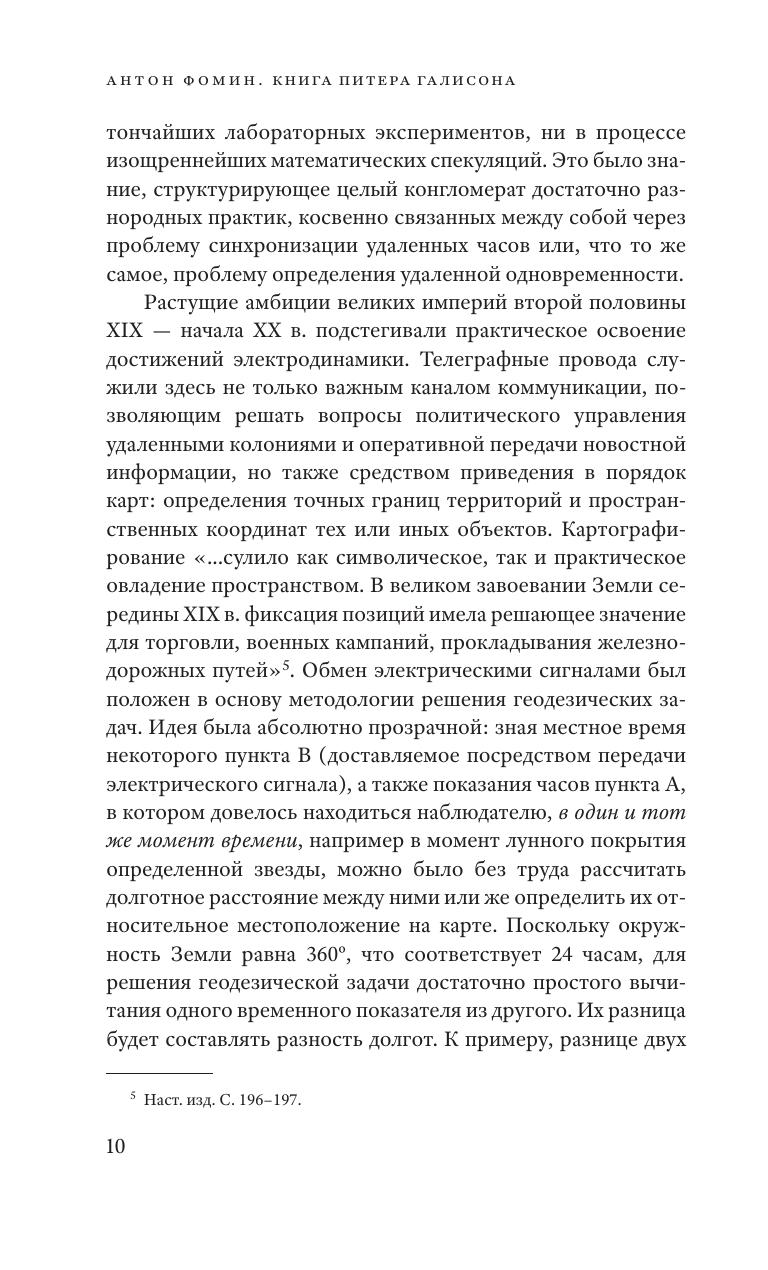 Книга современного американского философа и историка науки Питера Галисона знакомит читателя с тем, как на рубеже XIX–XX вв. вырабатывалась процедура координации часов, ставшая затем одной из опор релятивистской физики. В центре внимания автора оказываются не только теоретические рассуждения знаменитых физиков — прежде всего Эйнштейна и Пуанкаре, — но также чрезвычайно запутанный клубок разнородных интересов и практик, принадлежащих навигаторам, астрономам, железнодорожникам, военным, бизнесменам и картографам тех времен, которые позволили в чем-то проиллюстрировать, в чем-то дискредитировать, а в чем-то и предвосхитить идеи кабинетных ученых.