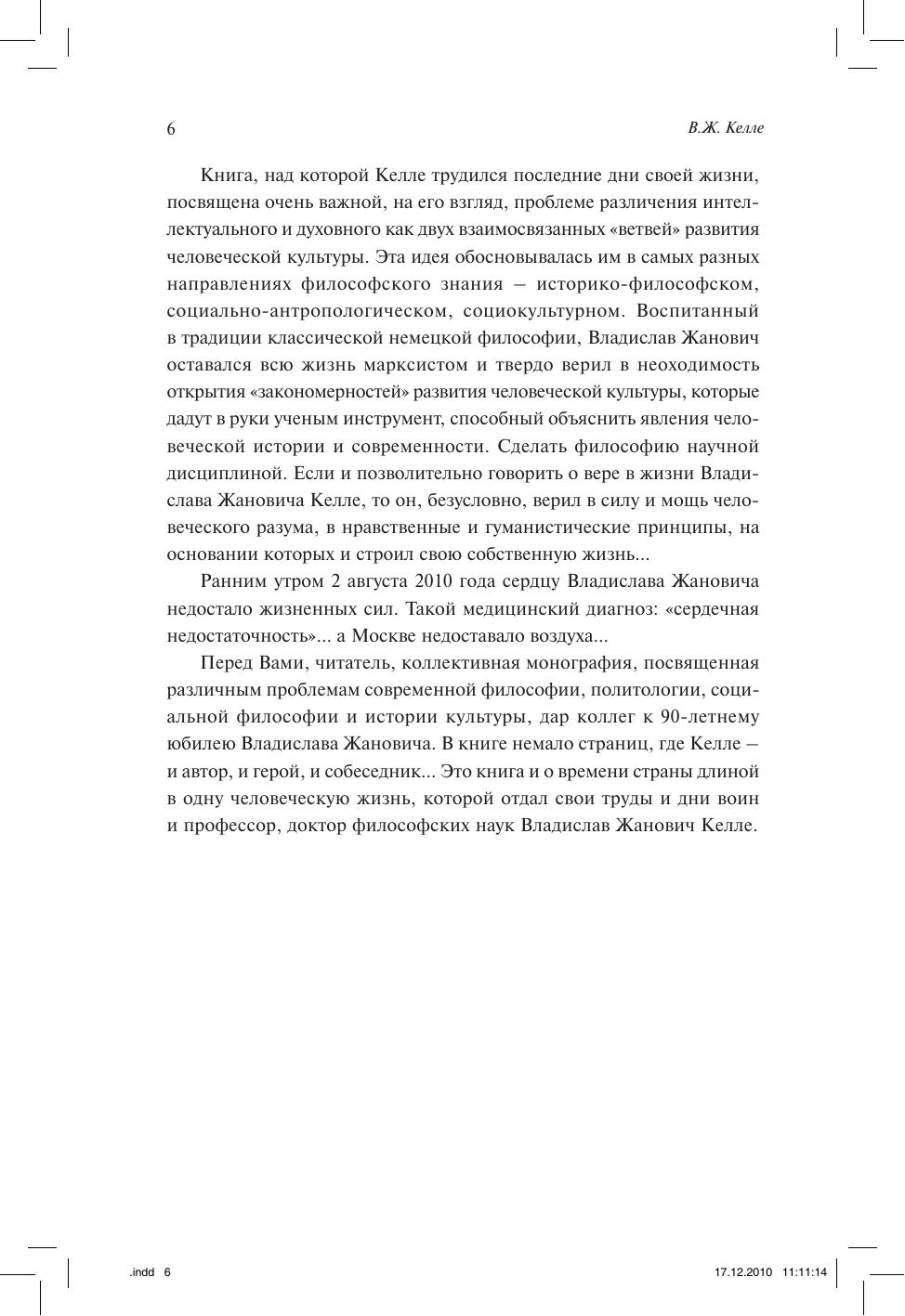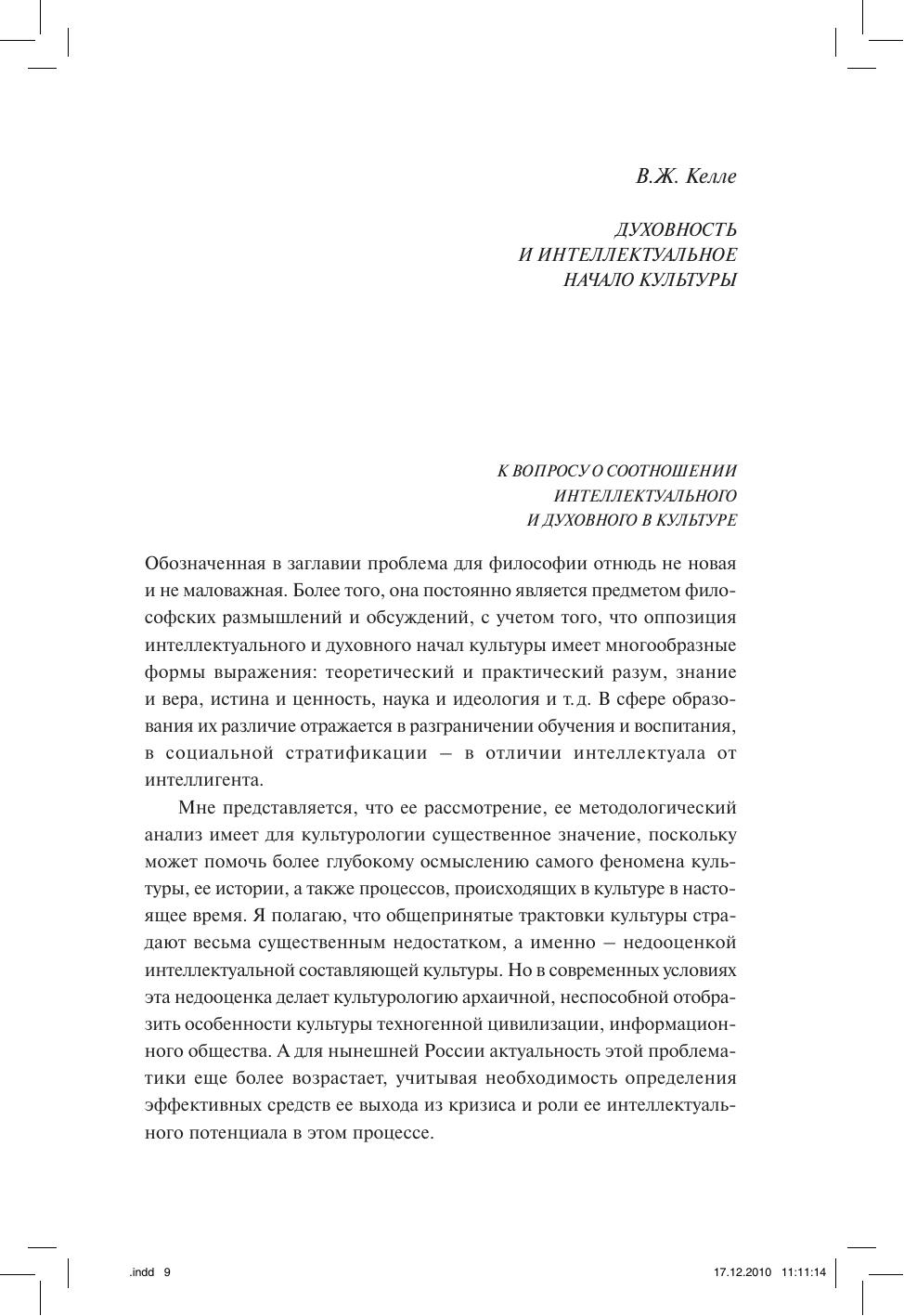 В основу коллективной монографии положена идея, разрабатывавшаяся проф. В.Ж. Келле (21.10.1920–02.08.2010) в последнее десятилетие его творческой деятельности. Разграничение двух ветвей, культуры, интеллектуальной и духовной, их историческое развитие, конфликт и продуктивное взаимодействие, разнообразие всевозможных проявлений – эти сюжеты лежат в основе многих статей авторов сборника, в недавнем прошлом коллег Владислава Жановича. Книга посвящена тем направлениям современного гуманитарного знания, в которых более всего работал Келле: социальной философии и философии культуры, социологии науки и современным проблемам инновационного знания, его развития и применения в современной России. Каждый из разделов открывается статьей В.Ж. Келле, тем самым сопрягается современность и недавняя история отечественной философской мысли. В книге также собраны мемуарные материалы и документы из жизни В.Ж. Келле.