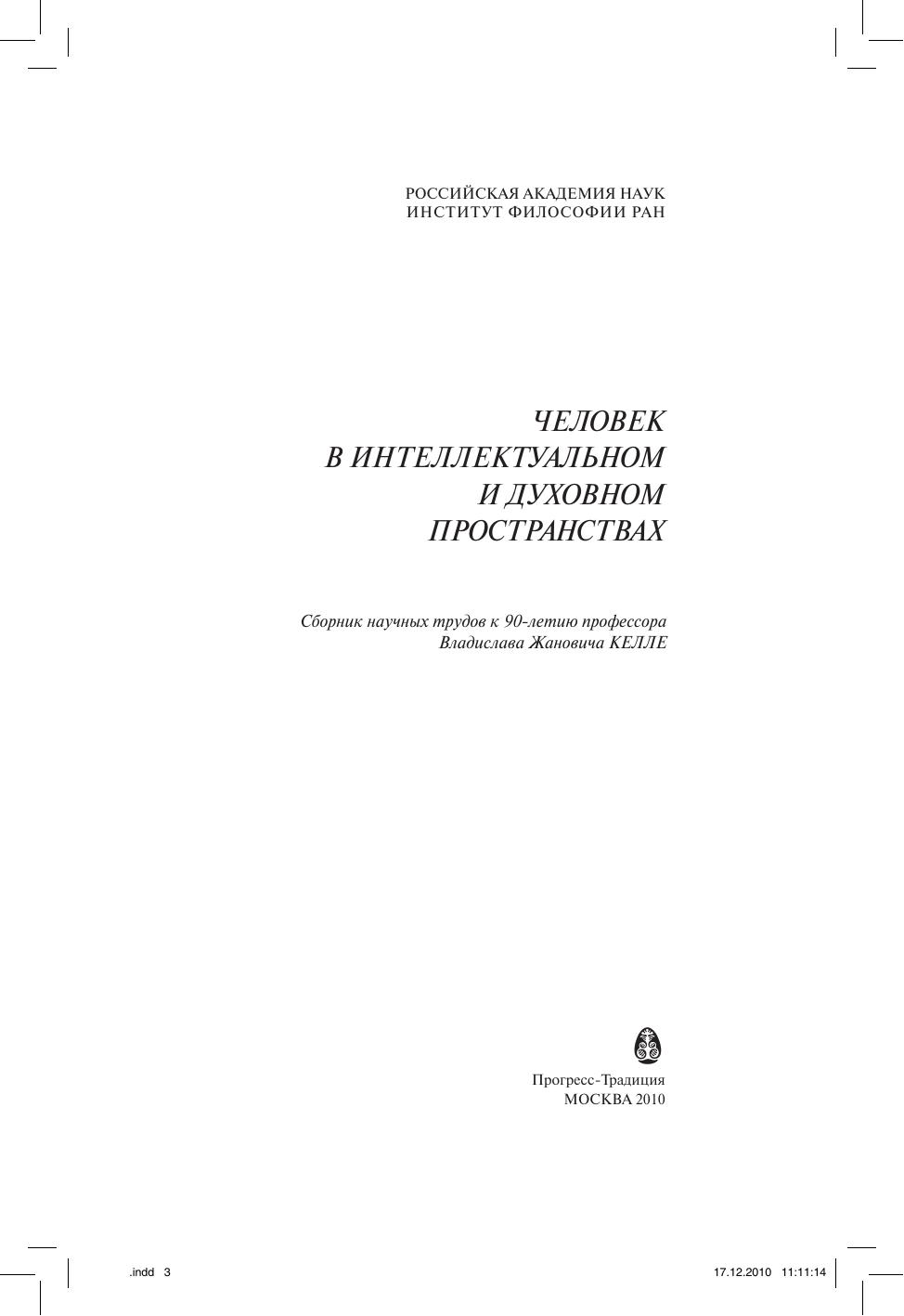 Человек в интеллектуальном и духовном пространствах