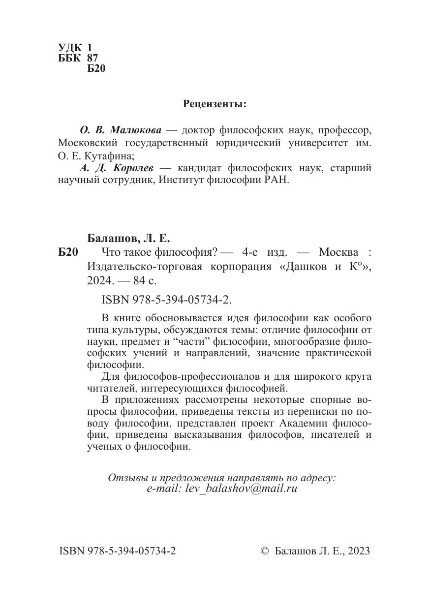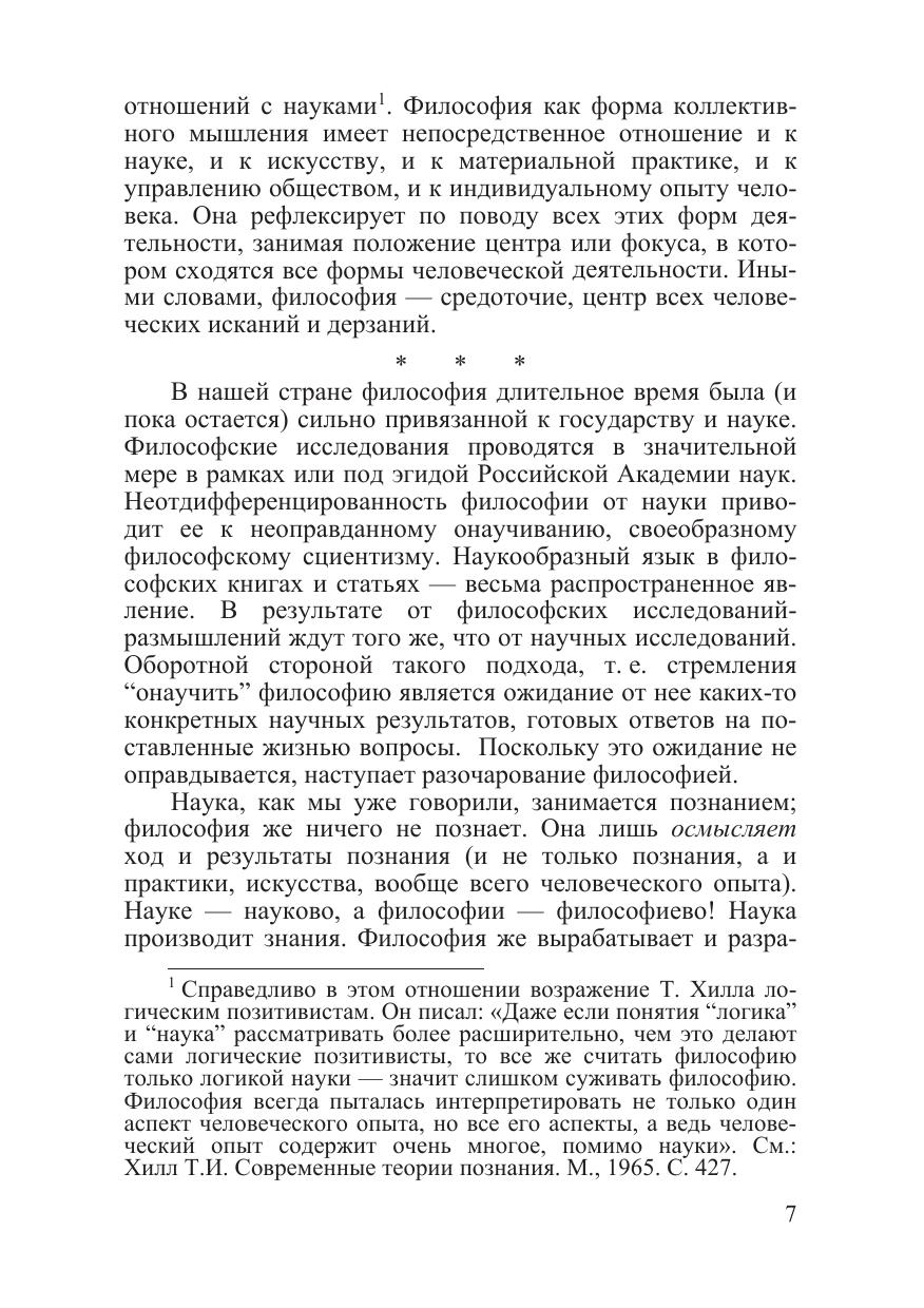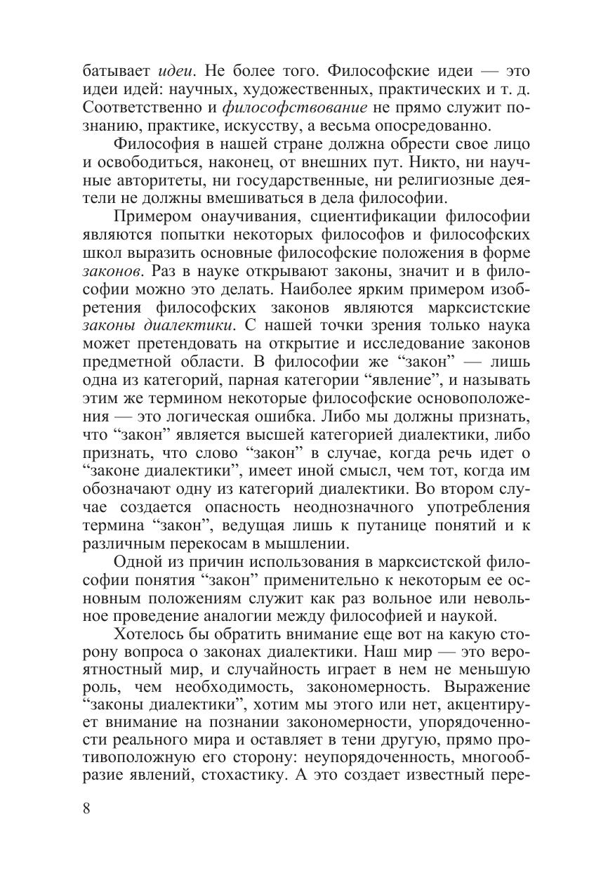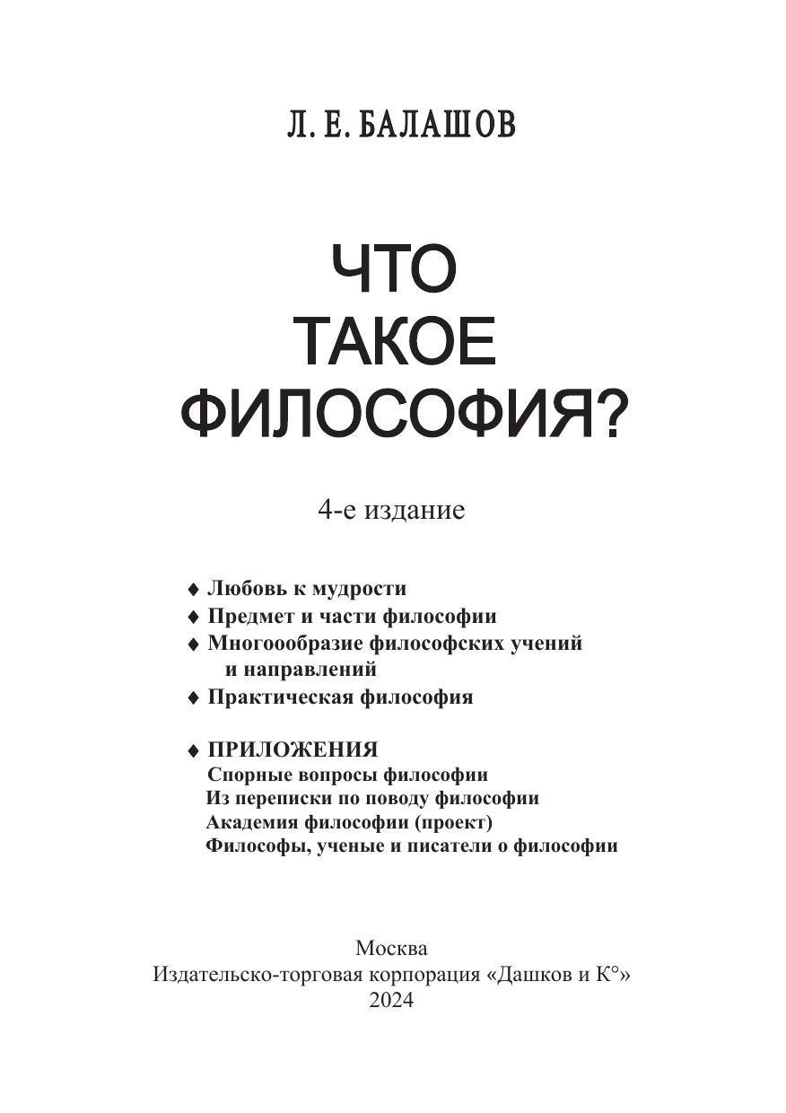 В книге обосновывается идея философии как особого типа культуры, обсуждаются темы: отличие философии от науки, предмет и “части” философии, многообразие философских учений и направлений, значение практической философии.