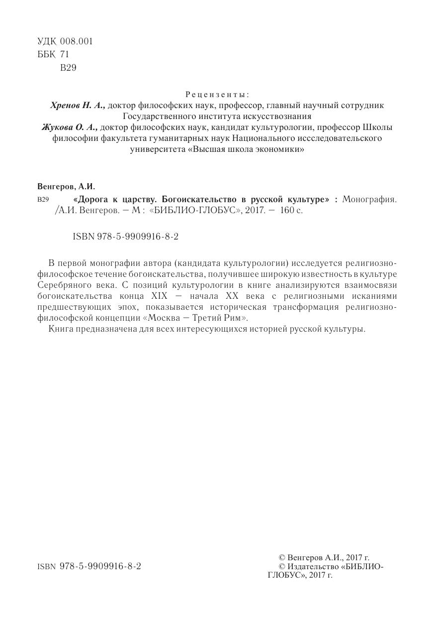В первой монографии автора (кандидата культурологии) исследуется религиознофилософское течение богоискательства, получившее широкую известность в культуре Серебряного века. С позиций культурологии в книге анализируются взаимосвязи богоискательства конца XIX – начала XX века с религиозными исканиями предшествующих эпох, показывается историческая трансформация религиознофилософской концепции «Москва – Третий Рим». Книга предназначена для всех интересующихся историей русской культуры.