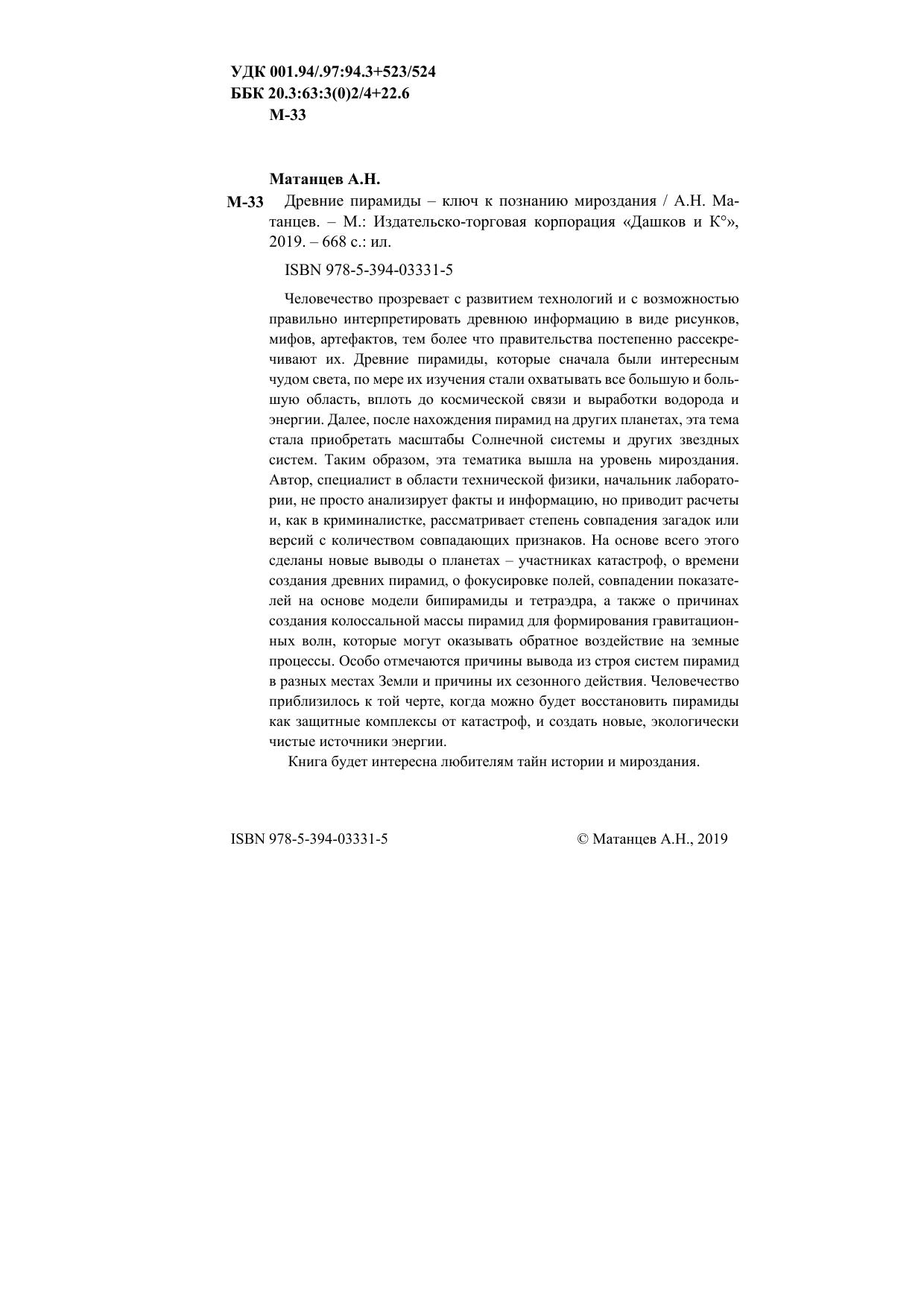 Человечество прозревает с развитием технологий и с возможностью правильно интерпретировать древнюю информацию в виде рисунков, мифов, артефактов, тем более что правительства постепенно рассекречивают их. Древние пирамиды, которые сначала были интересным чудом света, по мере их изучения стали охватывать все большую и большую область, вплоть до космической связи и выработки водорода и энергии. Далее, после нахождения пирамид на других планетах, эта тема стала приобретать масштабы Солнечной системы и других звездных систем. Таким образом, эта тематика вышла на уровень мироздания. Автор, специалист в области технической физики, начальник лаборатории, не просто анализирует факты и информацию, но приводит расчеты и, как в криминалистке, рассматривает степень совпадения загадок или \версий с количеством совпадающих признаков. На основе всего этого сделаны новые выводы о планетах – участниках катастроф, о времени создания древних пирамид, о фокусировке полей, совпадении показателей на основе модели бипирамиды и тетраэдра, а также о причинах создания колоссальной массы пирамид для формирования гравитационных волн, которые могут оказывать обратное воздействие на земные процессы. Особо отмечаются причины вывода из строя систем пирамид в разных местах Земли и причины их сезонного действия. Человечество приблизилось к той черте, когда можно будет восстановить пирамиды как защитные комплексы от катастроф, и создать новые, экологически чистые источники энергии. Книга будет интересна любителям тайн истории и мироздания.