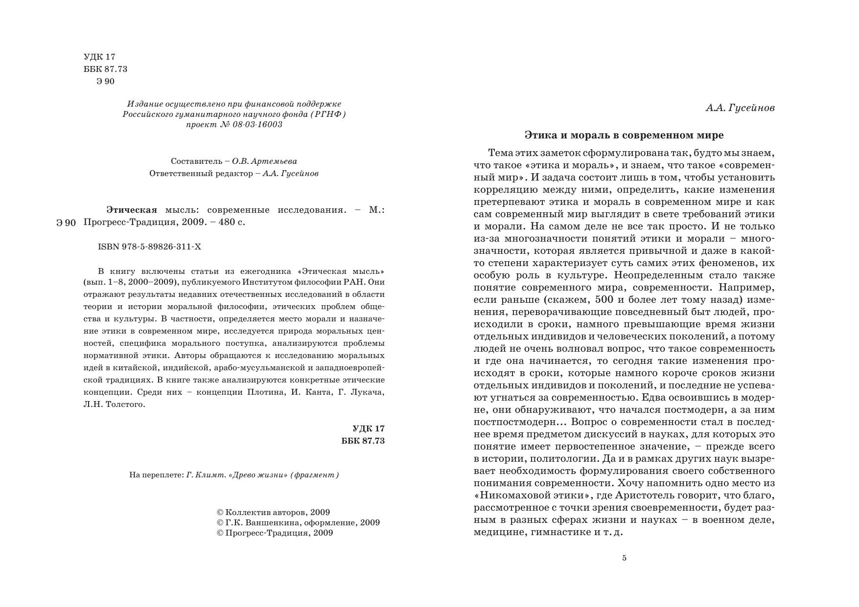 Этическая мысль: современные исследования