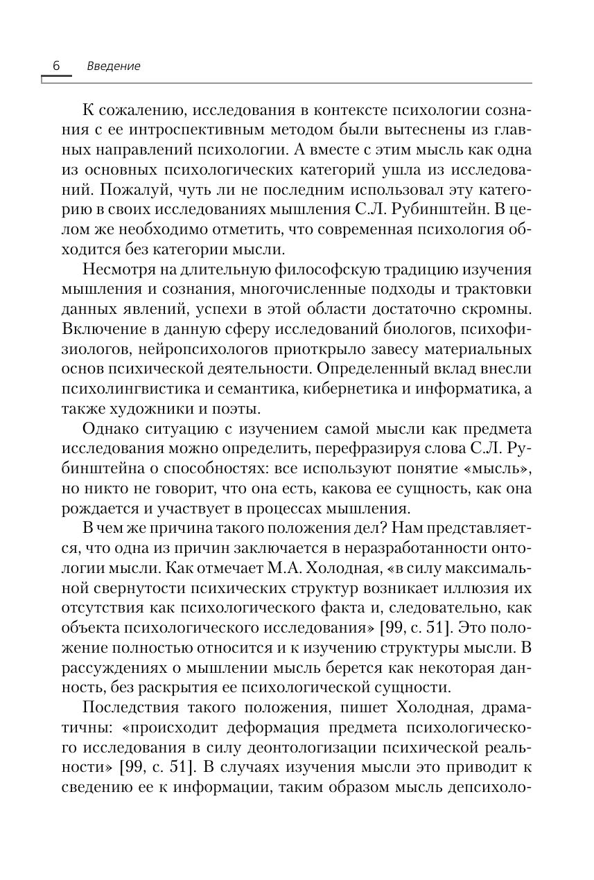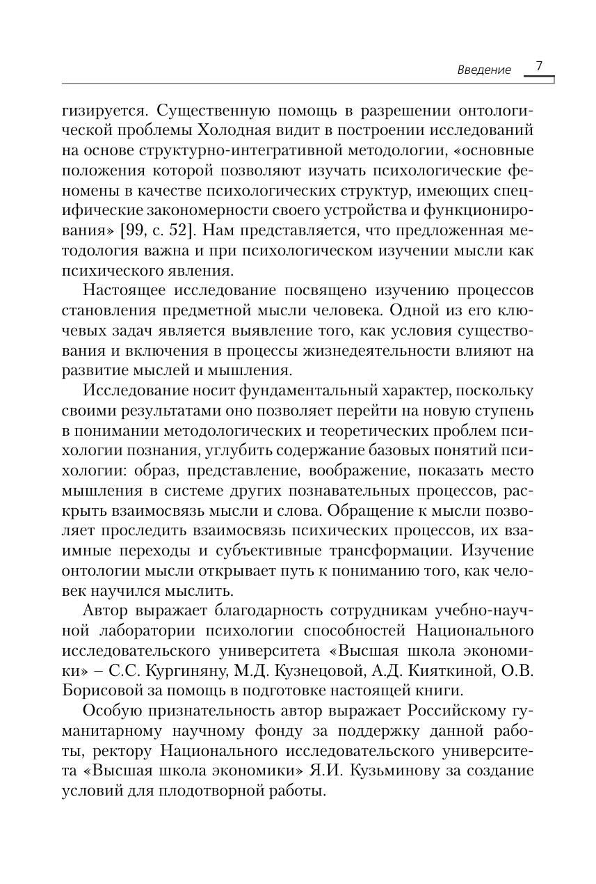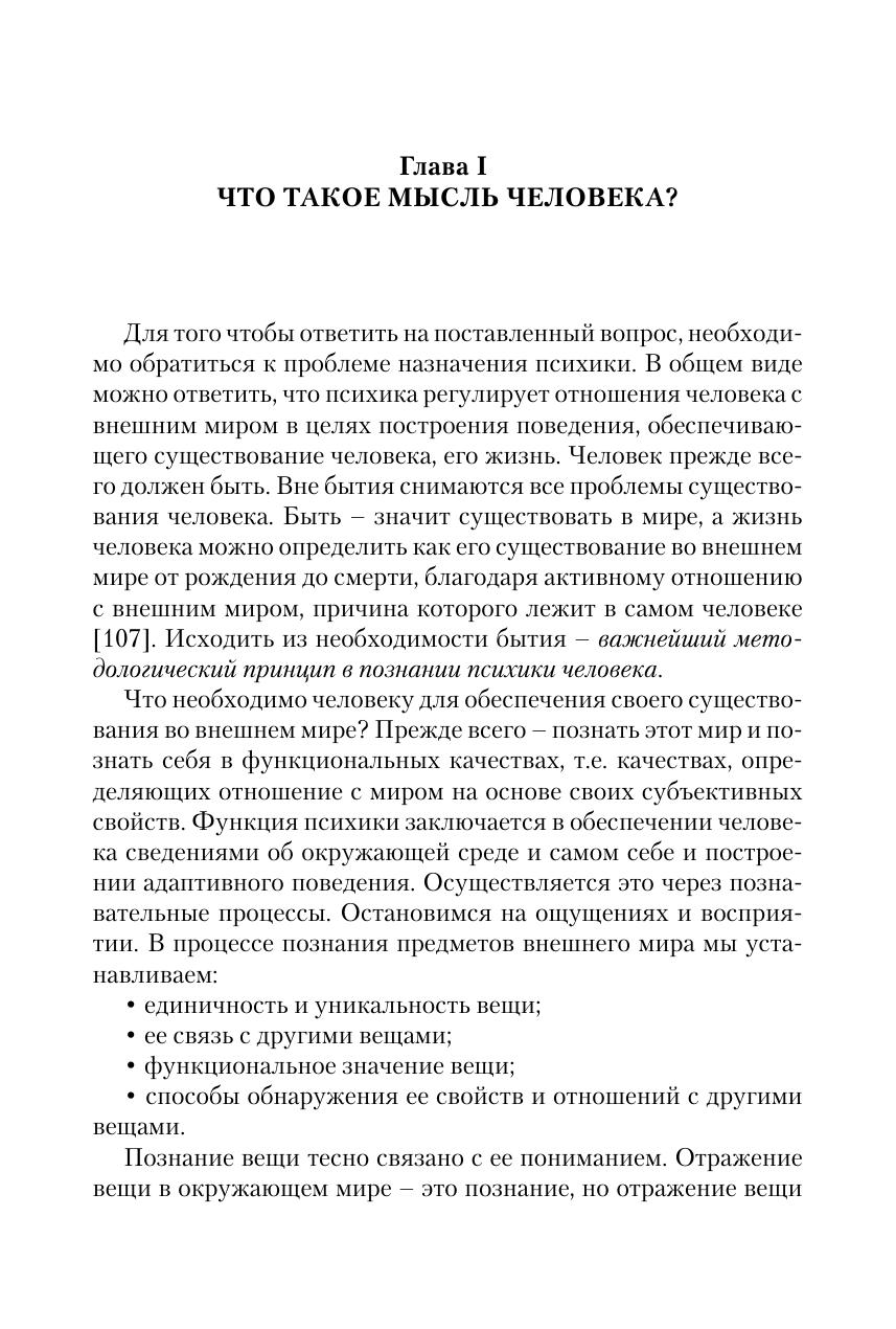Раскрывается эволюция мысли, понятие «мысль» вводится в число базовых психологических категорий. Исследуется трансформация субъективной мысли при переходе от образа к представлению и далее к слову-понятию. На этой основе показывается единство этих понятий, отнесенных к конкретному человеку, содержательная динамика процесса познания объективного мира. С использованием метода реконструкции психологической реальности, данных зоопсихологии, исследований морфологической эволюции, антропологии, нейрогенетических и физиологических проблем, а также результатов работ по психологии деятельности и культурно-исторической психологии объясняется специфические отличия мышления животных от мышления человека. Специально анализируется роль мыслетворчества и словотворчества в интеллектуальной эволюции человека. На примере освоения гончарного искусства представлен процесс интеллектуального развития человека в деятельности. Исследуются отношения мыслей и мышления. Обосновывается, что сущность процесса научения мышлению заключается в единстве научения и содержания психики, отраженного в мыслях, и освоения мыслительных операций, которые позволяют работать с содержанием психики. Процесс интеллектуального развития освещается на основе экспериментальных данных по ментальному развитию учащихся. Для ученых и специалистов в области психологии, философии, социологии, педагогики. Может использоваться в учебном процессе по психолого-педагогическим направлениям и специальностям. Представляет интерес для широкого круга читателей, интересующихся проблемами культурно-исторической психологии, интеллектуального развития человека.