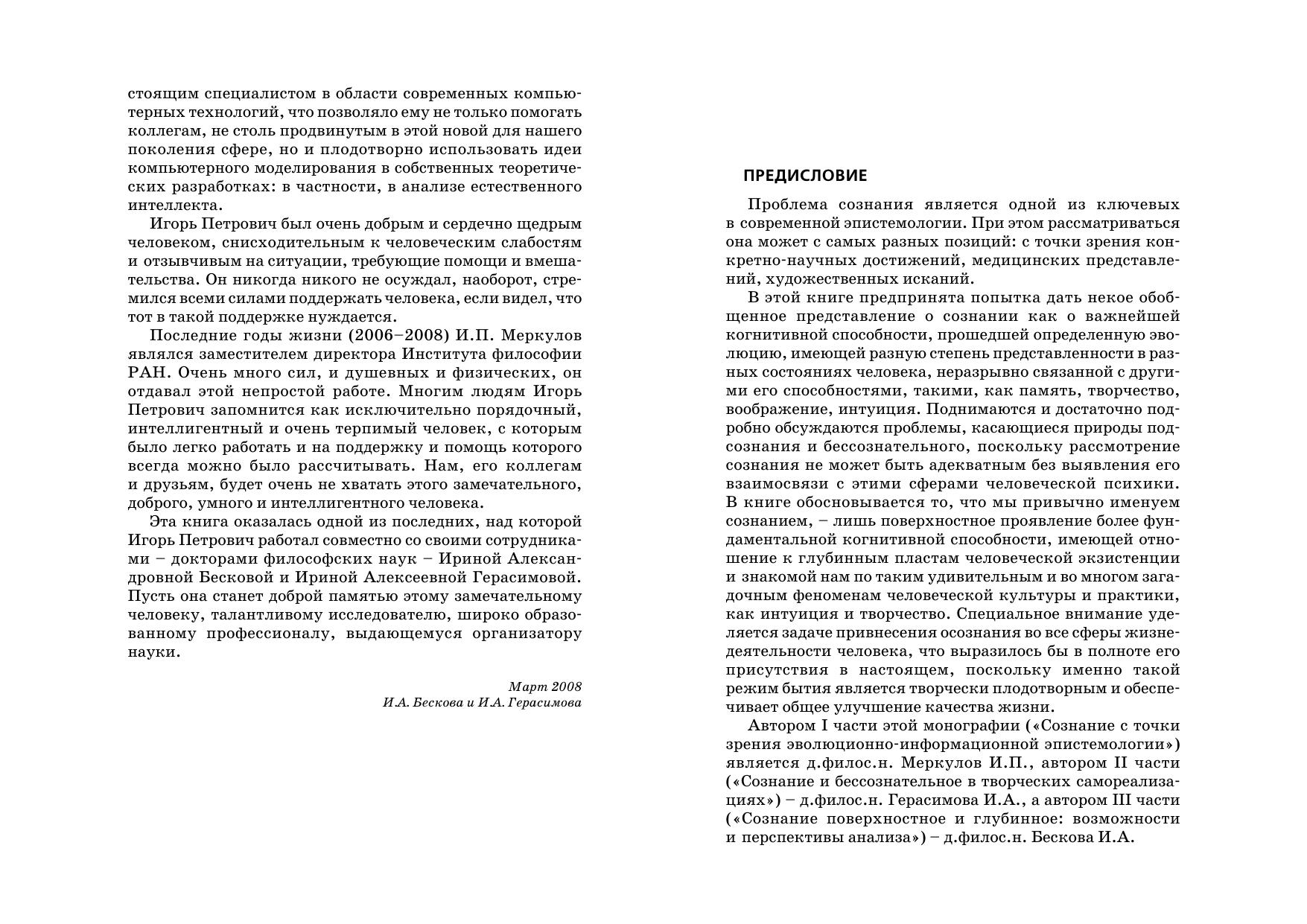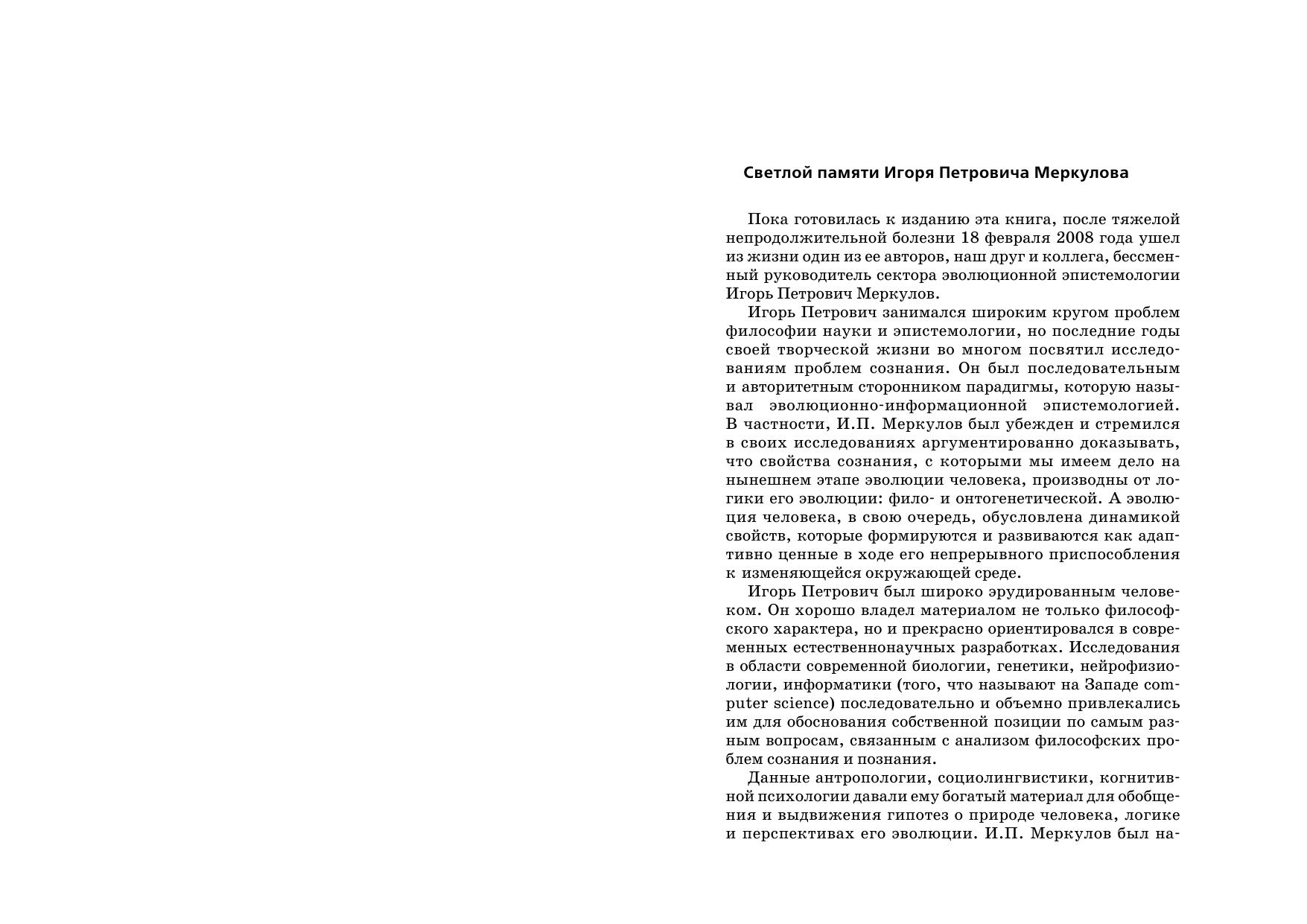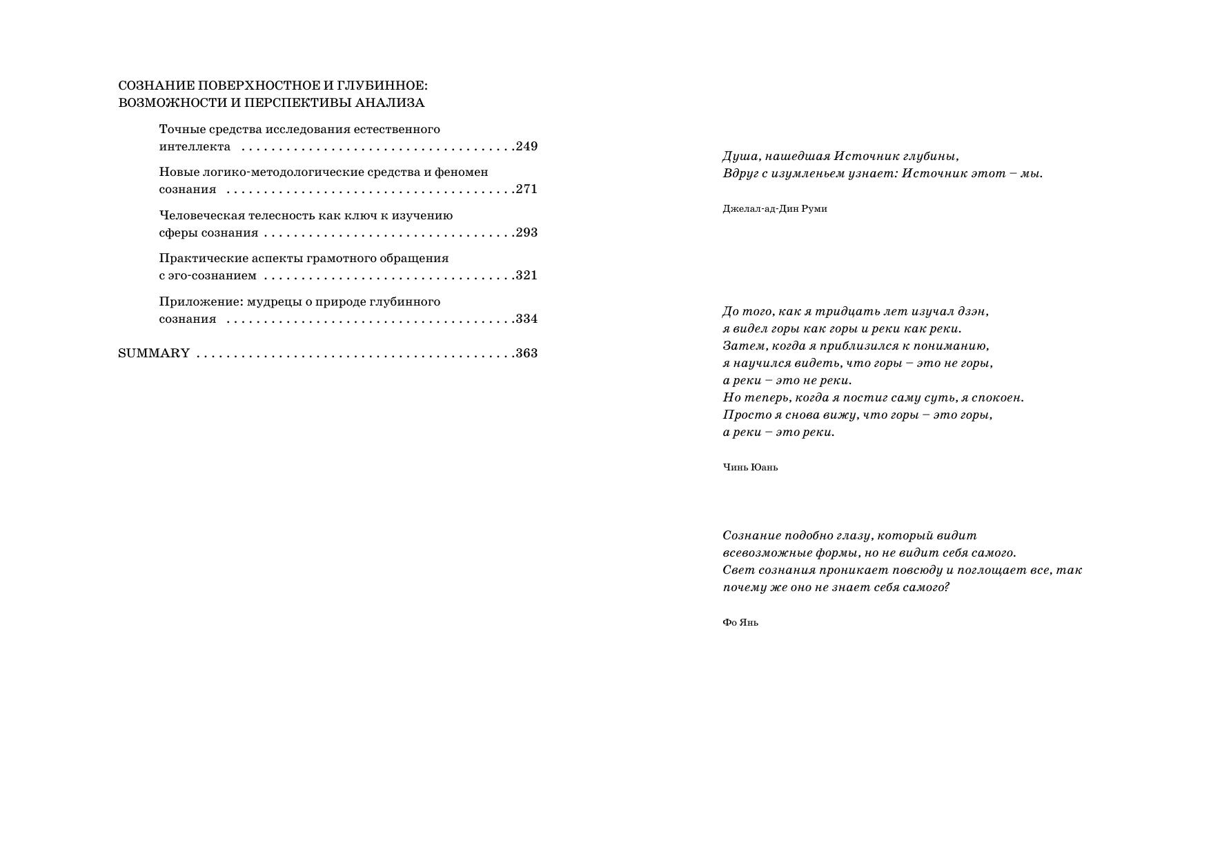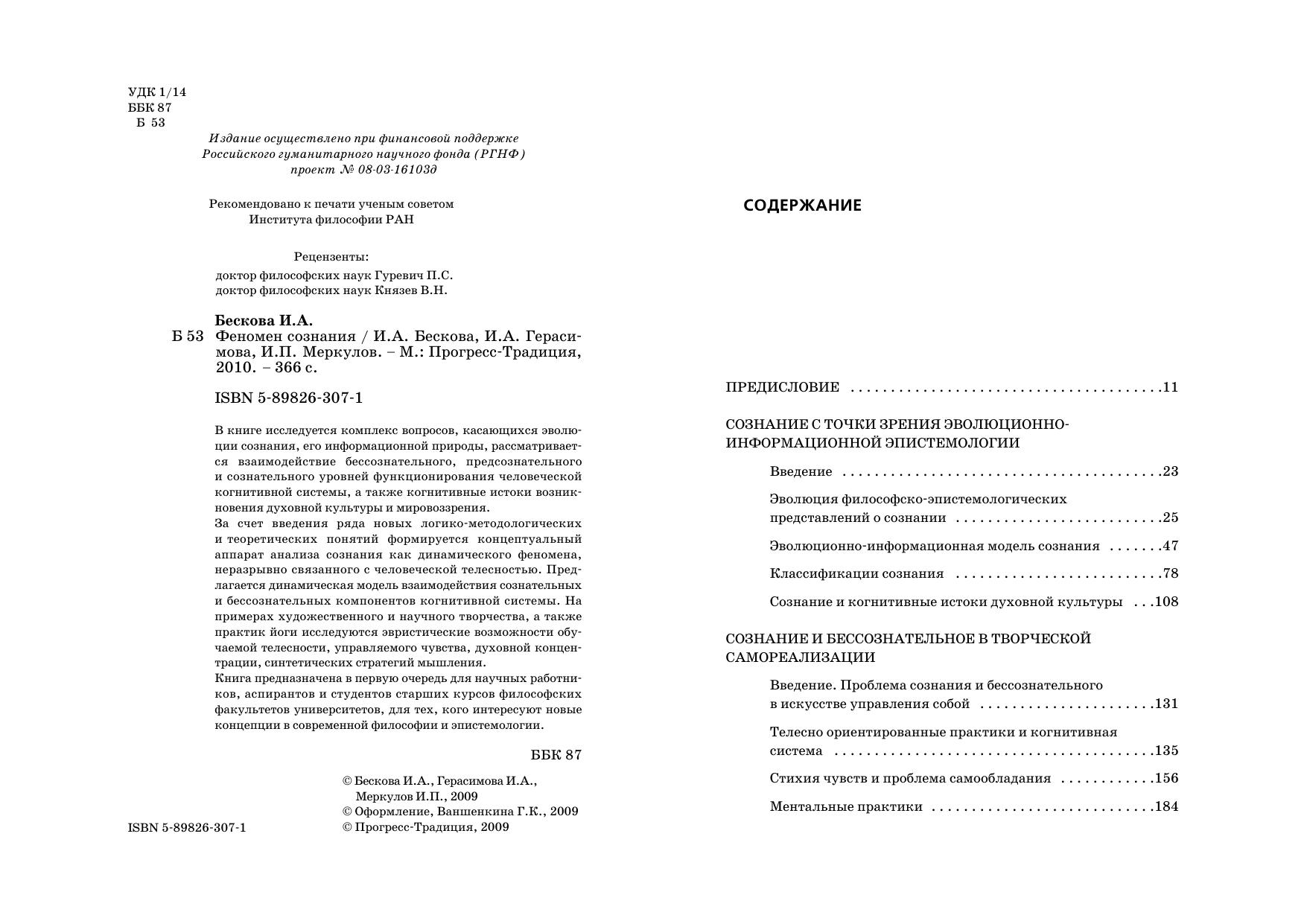 В книге исследуется комплекс вопросов, касающихся эволюции сознания, его информационной природы, рассматривается взаимодействие бессознательного, предсознательного и сознательного уровней функционирования человеческой когнитивной системы, а также когнитивные истоки возникновения духовной культуры и мировоззрения. За счет введения ряда новых логико-методологических и теоретических понятий формируется концептуальный аппарат анализа сознания как динамического феномена, неразрывно связанного с человеческой телесностью. Предлагается динамическая модель взаимодействия сознательных и бессознательных компонентов когнитивной системы. На примерах художественного и научного творчества, а также практик йоги исследуются эвристические возможности обучаемой телесности, управляемого чувства, духовной концентрации, синтетических стратегий мышления. Книга предназначена в первую очередь для научных работников, аспирантов и студентов старших курсов философских факультетов университетов, для тех, кого интересуют новые концепции в современной философии и эпистемологии.