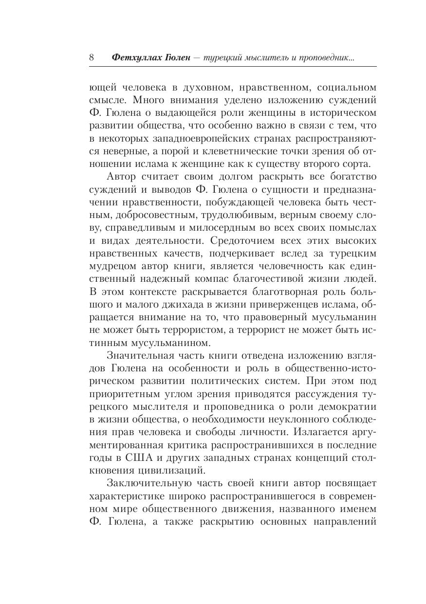 В книге анализируется философско-религиозная доктрина, созданная Ф. Гюленом. В ней характеризуются взгляды турецкого мыслителя на роль образования, науки, культуры, религии, развития человека и общества. Основное внимание фокусируется на утверждении, согласно которому человек — это суть социального бытия, квинтессенция всех тайн миров. В этом контексте выявляется роль женщины, семьи, нравственности, мудрости в духовном постижении и преобразовании человеком окружающей реальности. Рассчитана на научных сотрудников, преводавателей вузов, студентов и широкий круг читателей.