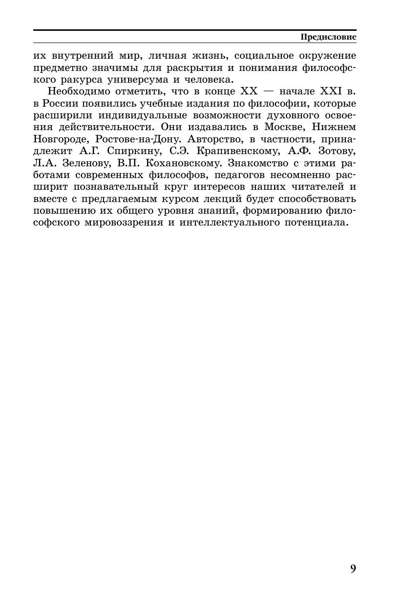 Содержание курса отличается предметностью и доступностью изложения основных позиций российской и зарубежной философских школ. Учебник предназначен для студентов вузов.