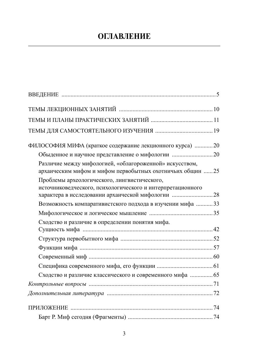 Настоящее учебное пособие представляет собрание материалов, необходимых для изучения курса «Философия мифа», рассчитанного на один семестр. Содержит темы лекций и конспективное их освещение, планы практических занятий, библиографию (список учебной и научной литературы). В приложении дана краткая хрестоматия, включающая фрагменты работ наиболее значительных исследователей мифологии, а также образцы некоторых мифов и «Глоссарий».